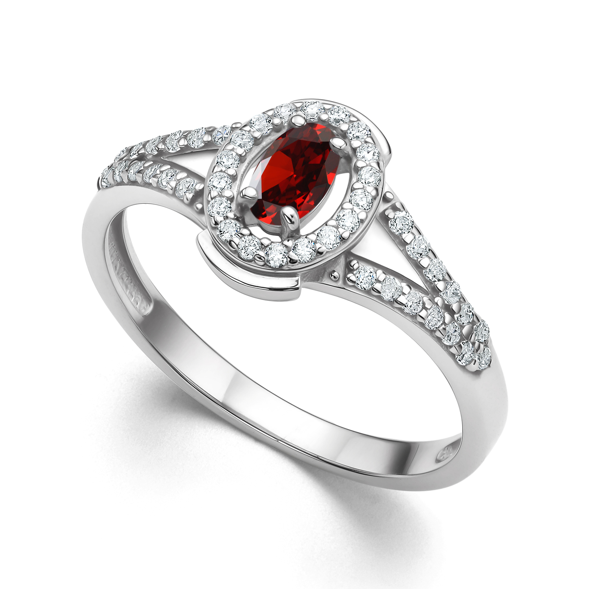 Кольцо из серебра 925 пробы с гранатом и фианитами