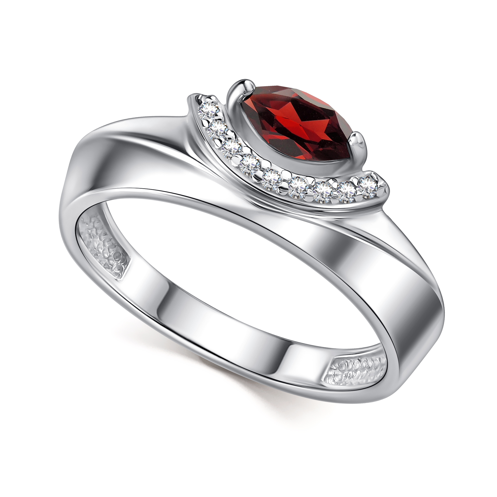 Кольцо из серебра 925 пробы с гранатом и фианитами
