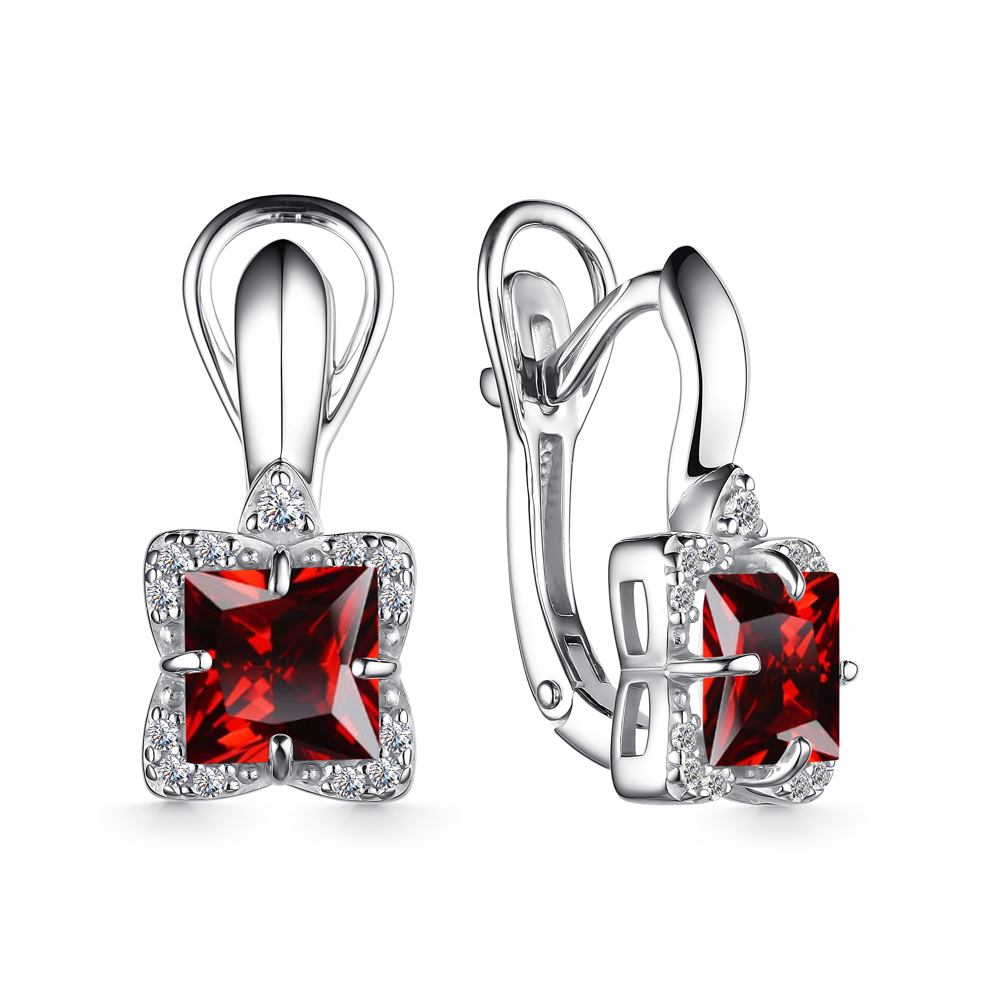 Серьги из серебра 925 пробы с гранатами и фианитами