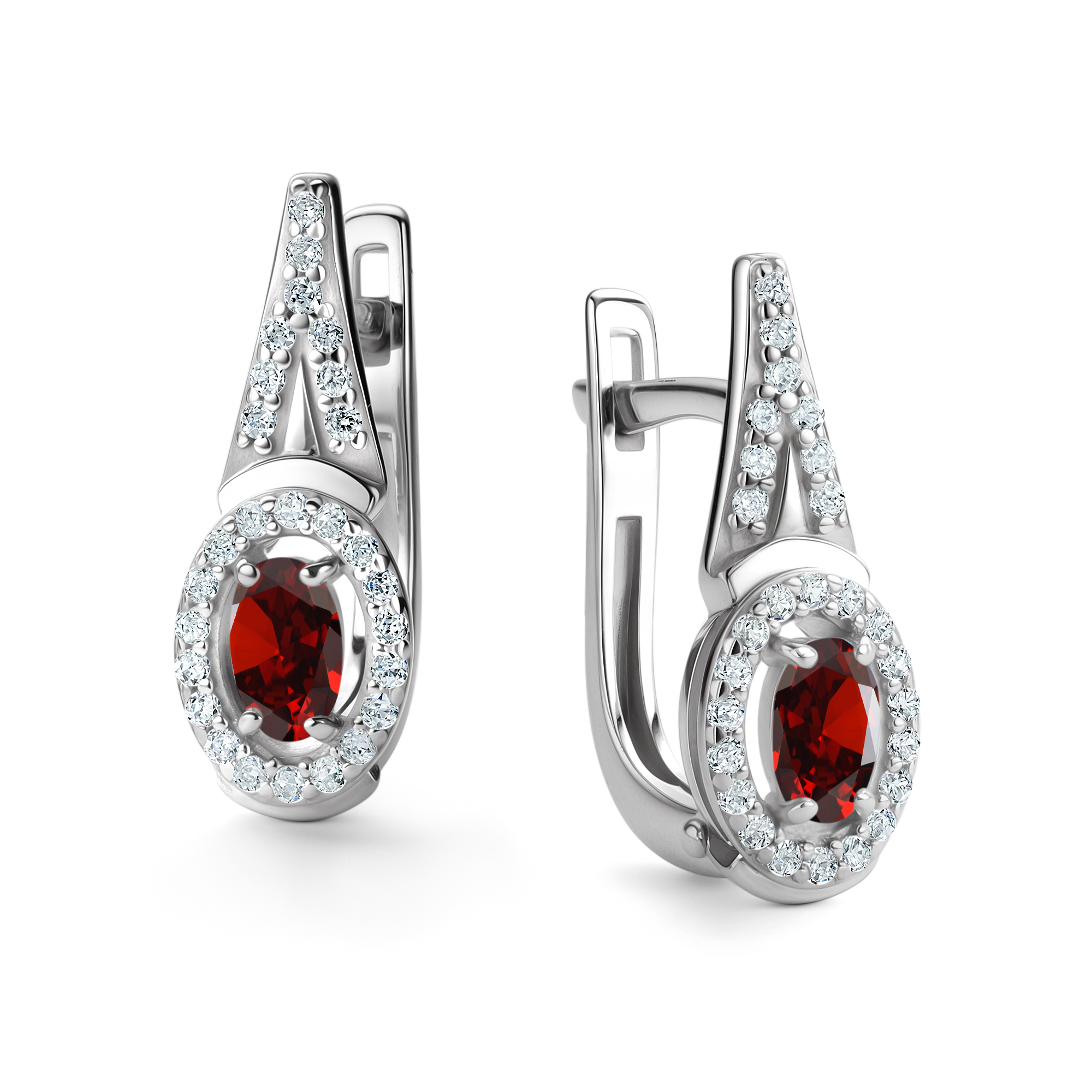 Серьги из серебра 925 пробы с гранатами и фианитами