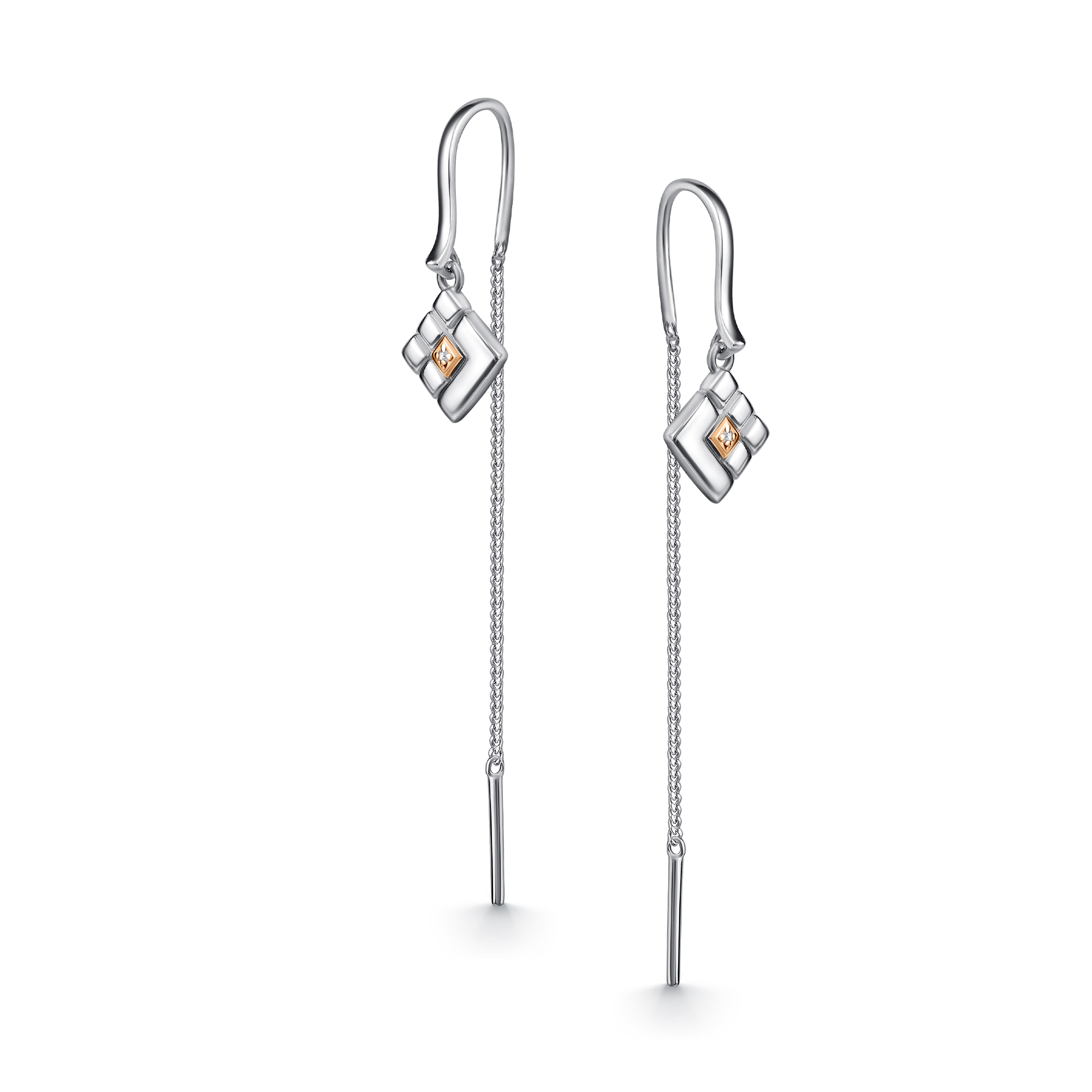 Серьги протяжки из серебра 925 пробы с накладкой из золота 585 пробы и бриллиантами
