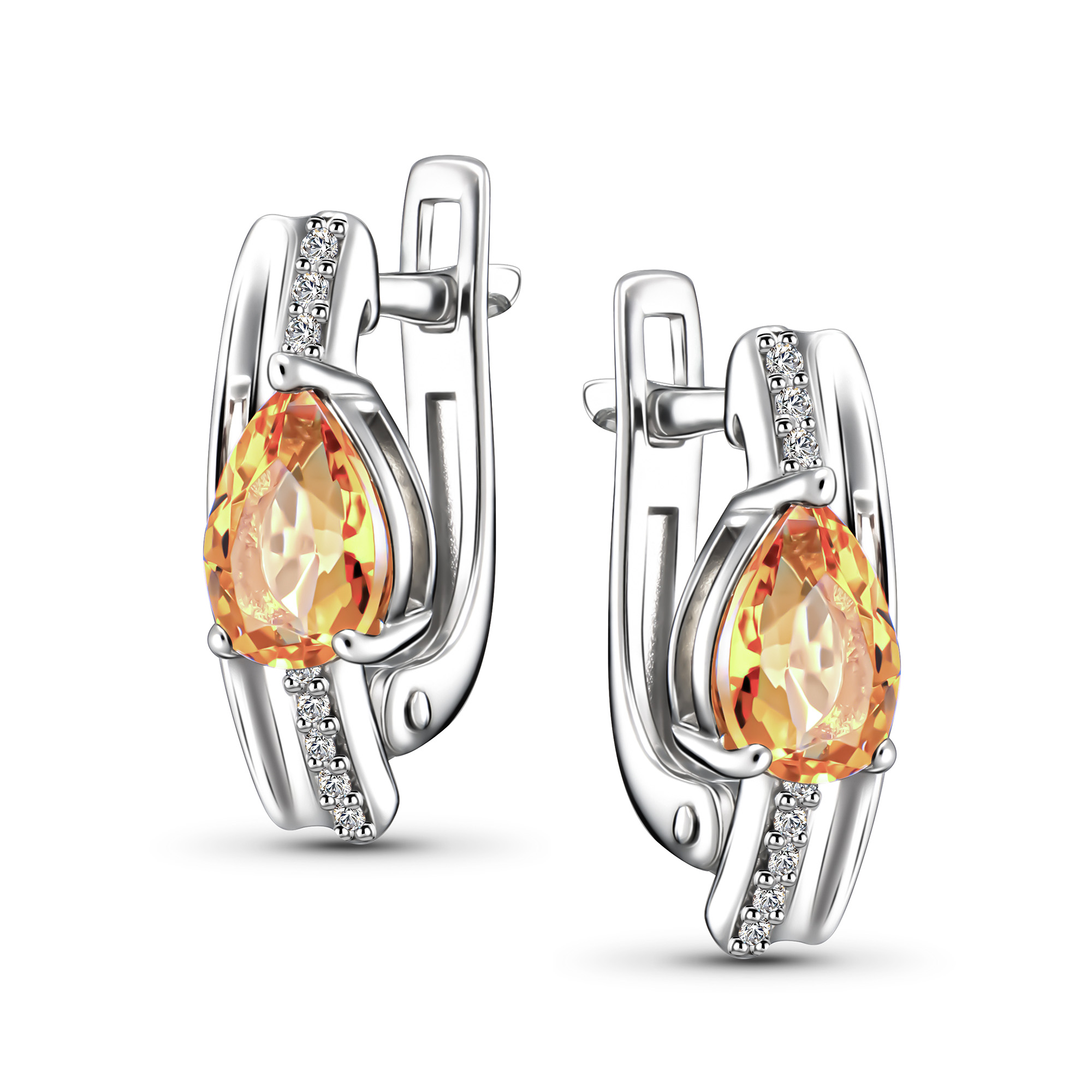 Серьги из серебра 925 пробы с цитринами и фианитами