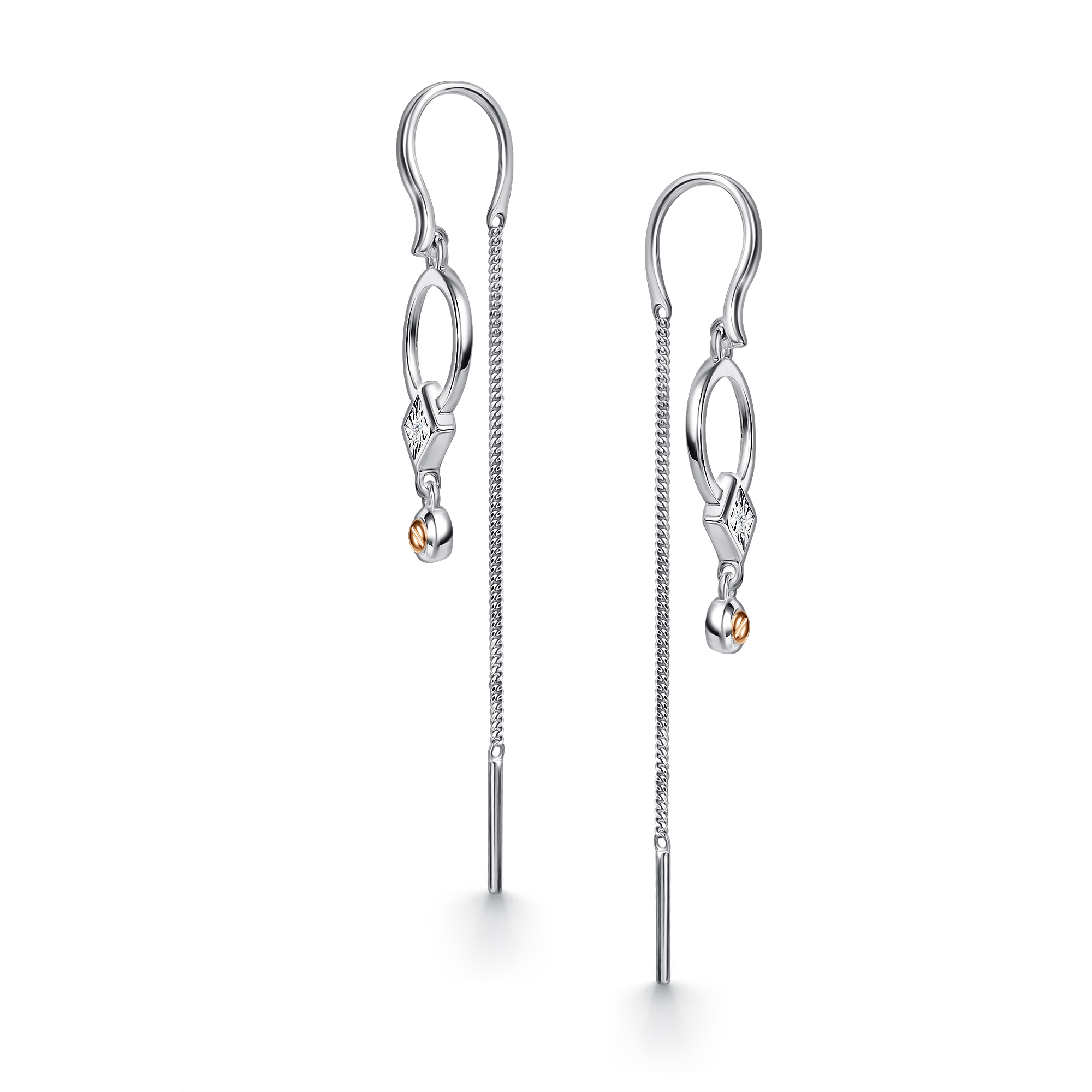 Серьги протяжки из серебра 925 пробы с накладкой из золота 585 пробы и бриллиантами