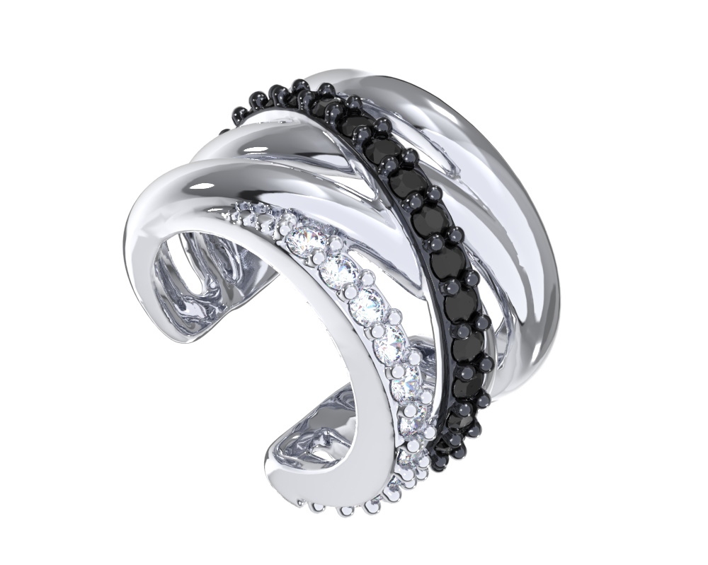 Моносерьга кафф из серебра 925 пробы с цветными фианитами