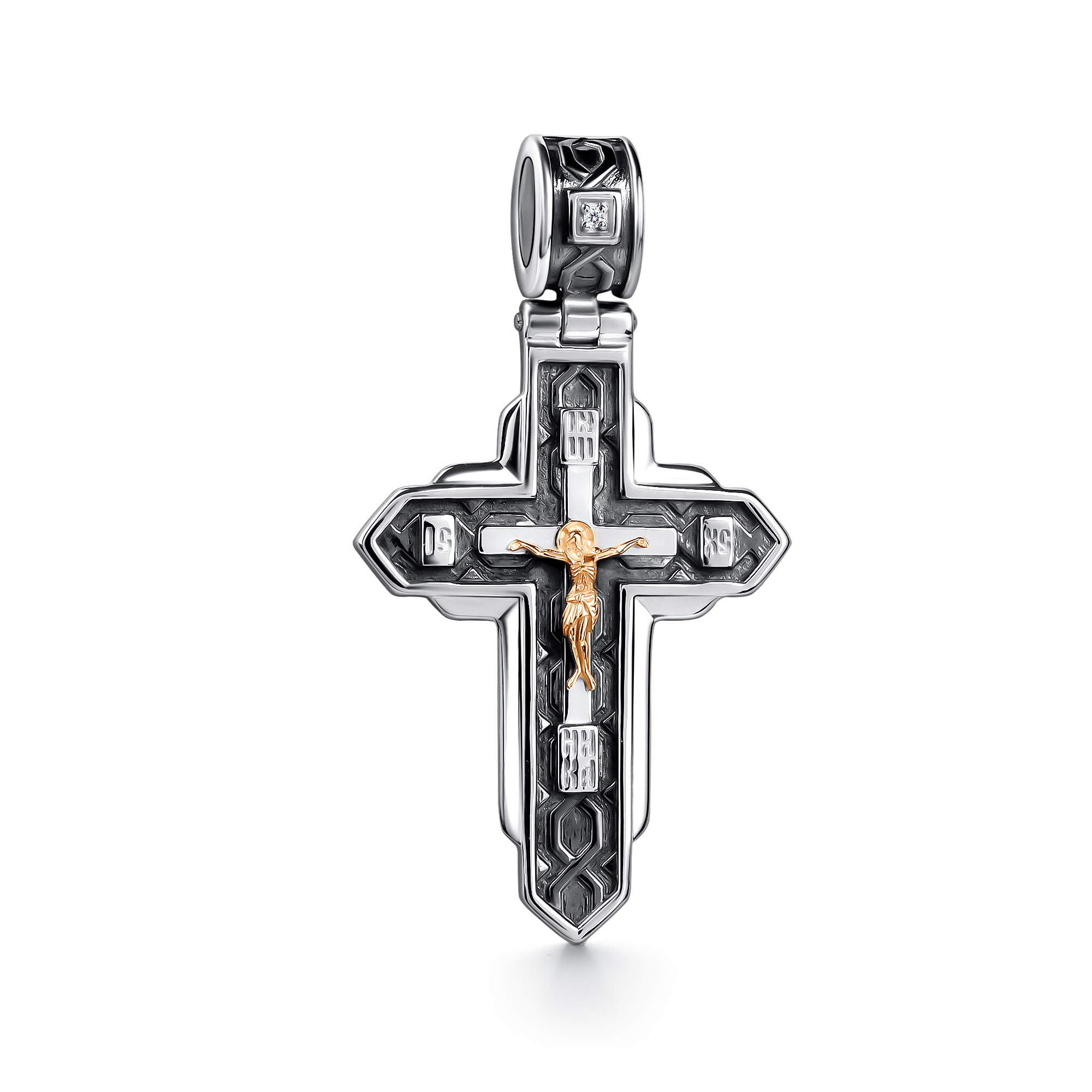 Подвеска декоративный крест из серебра 925 пробы с накладками из золота 585 пробы с бриллиантами