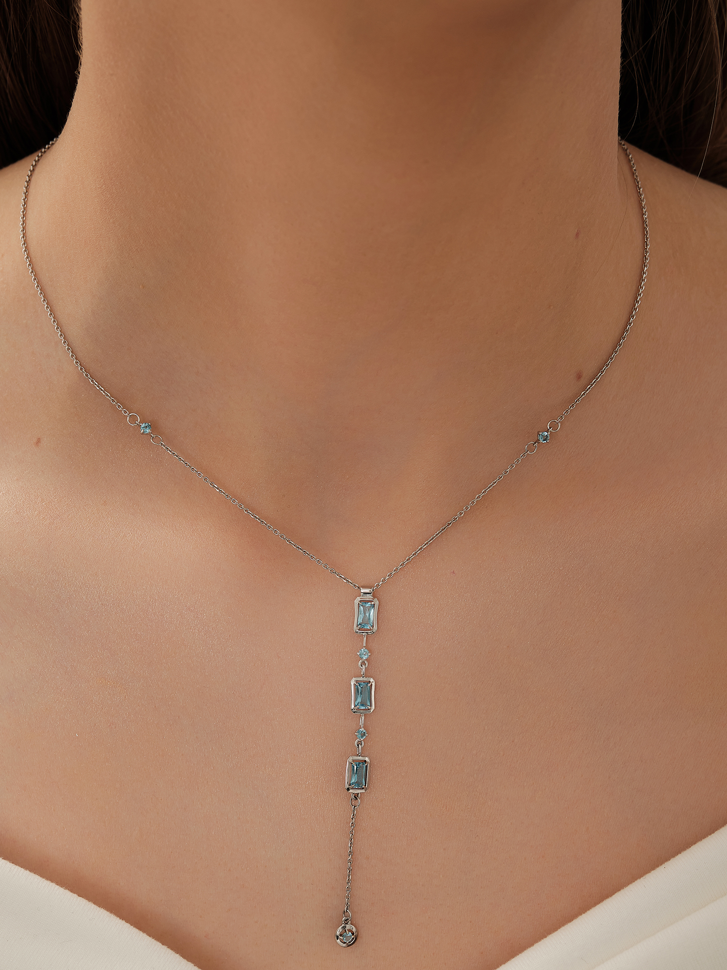 Колье из белого золота 585 пробы с топазами