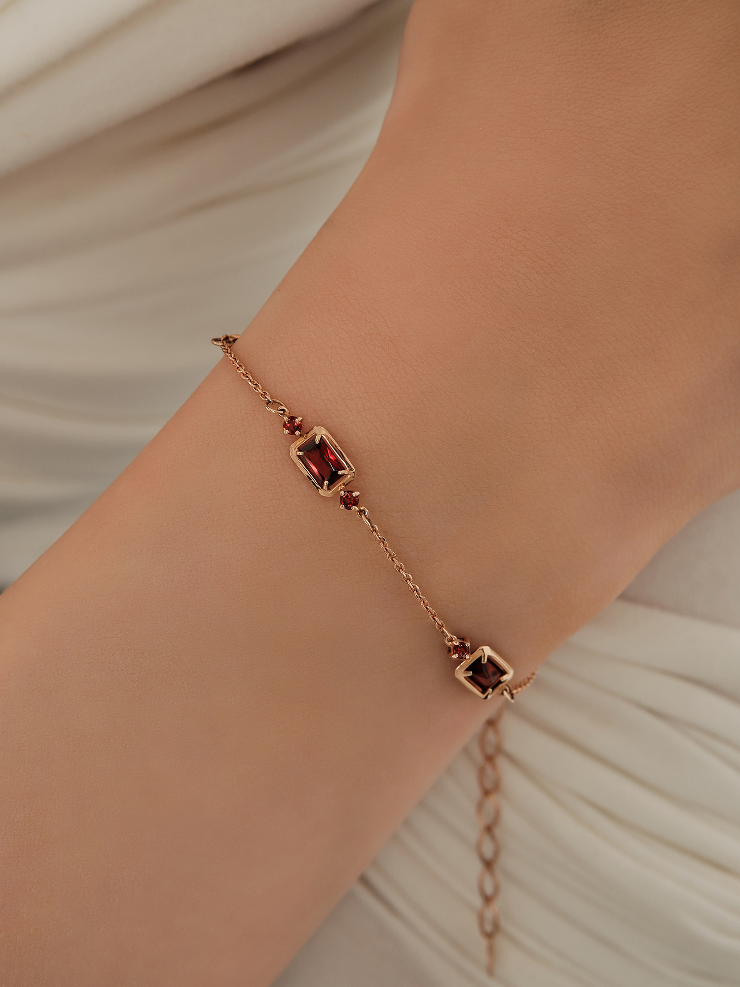 Браслет – это то украшение, что всегда на виду. Не упускайте возможности услаждать свой взгляд красотой золота с эффектными вставками из граната двух огранок!