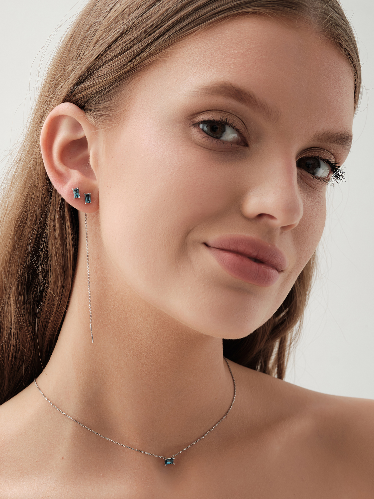 Пусеты из белого золота 585 пробы с топазами London Blue