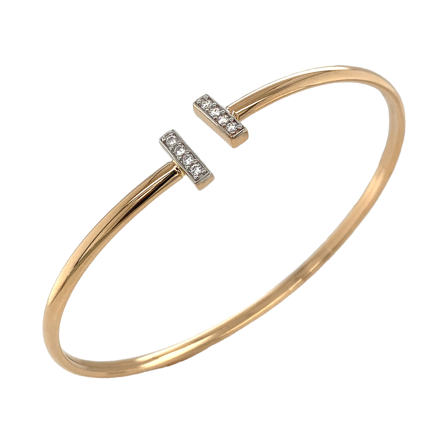 Жесткий браслет из золота 585 пробы с фианитами