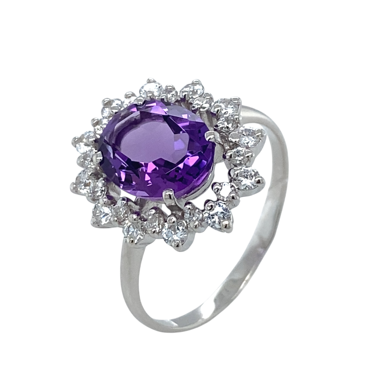 Кольцо из серебра 925 пробы с аметистом и фианитами