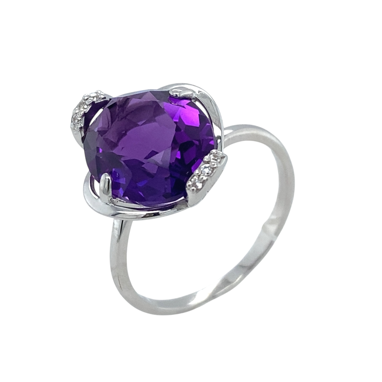 Кольцо из серебра 925 пробы с аметистом и фианитами