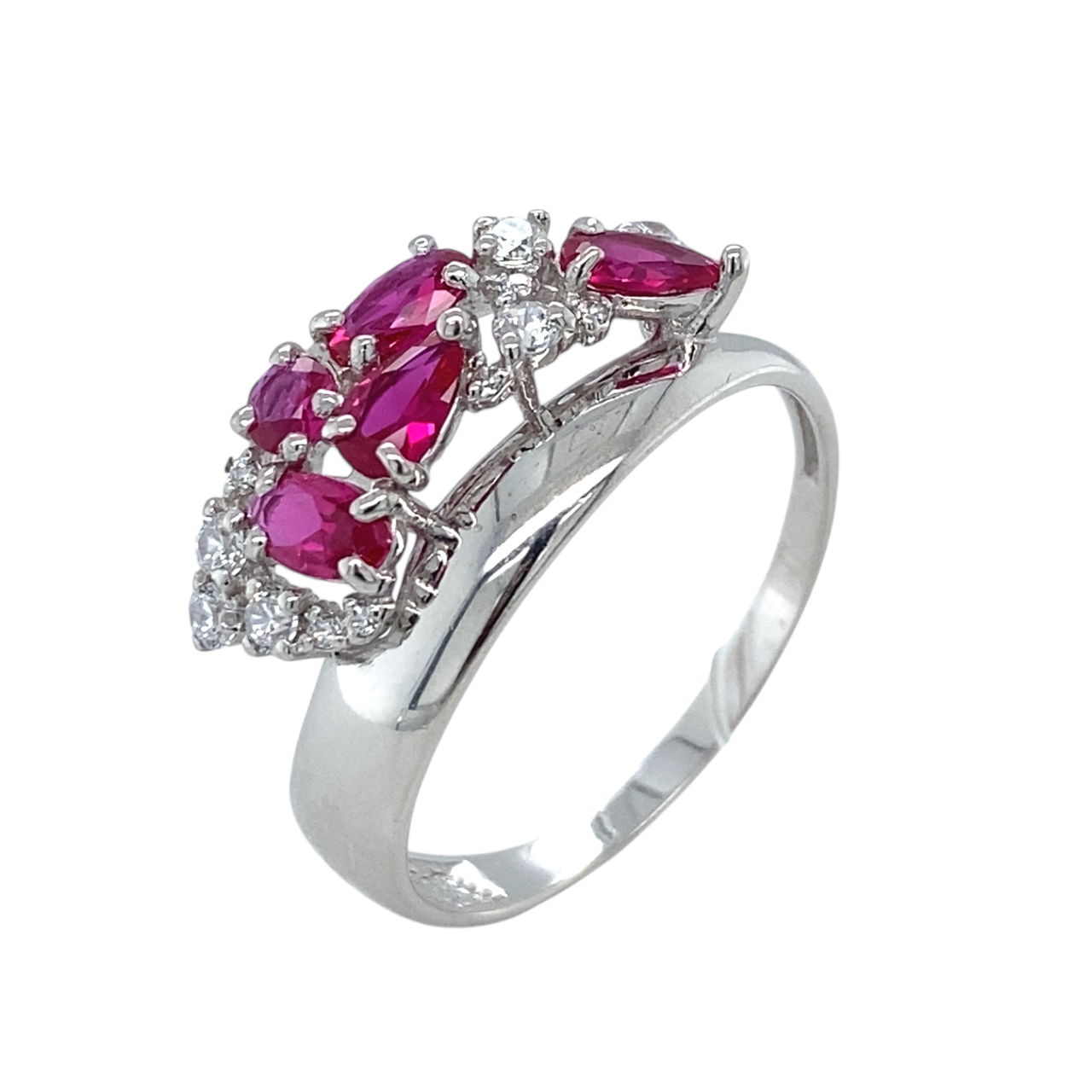 Кольцо из серебра 925 пробы с искусственным рубинами и фианитами