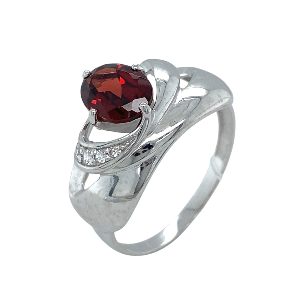 Кольцо из серебра 925 пробы с гранатом и фианитами