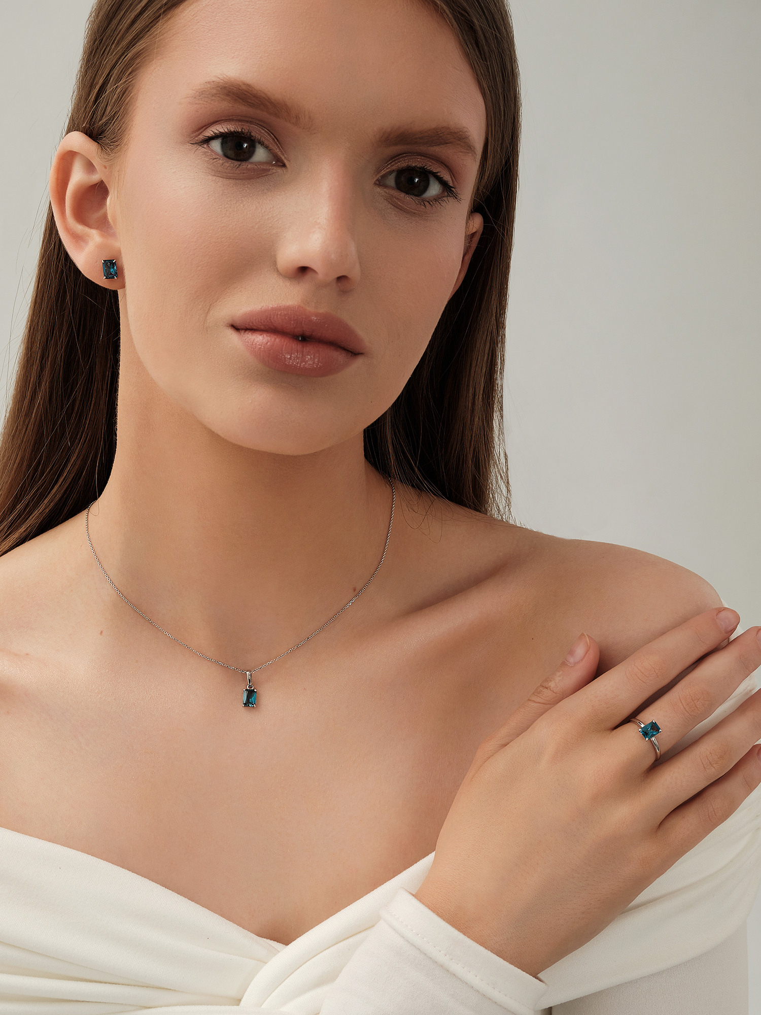 Подвеска из белого золота 585 пробы с топазом London Blue
