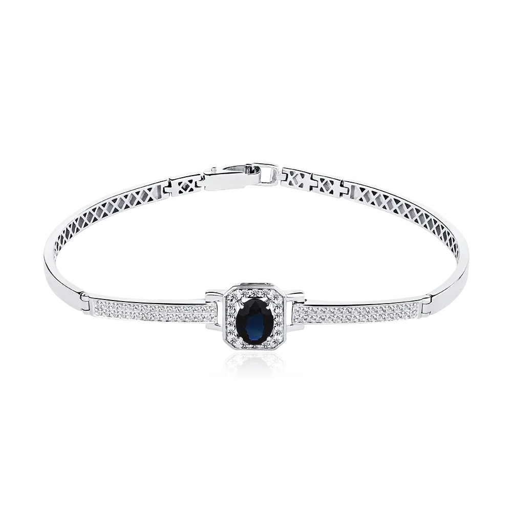 Жесткий браслет из белого золота 585 пробы с сапфирами и бриллиантами