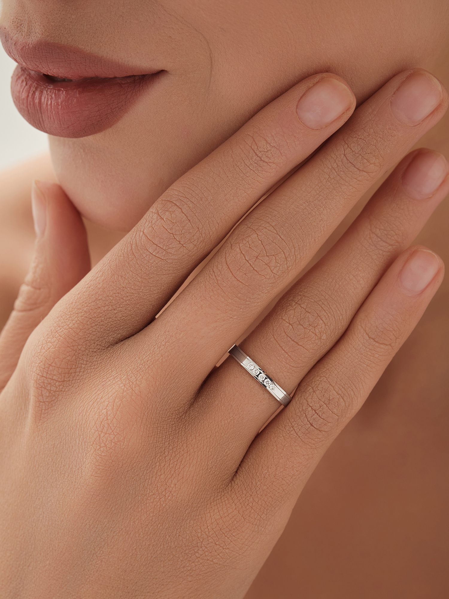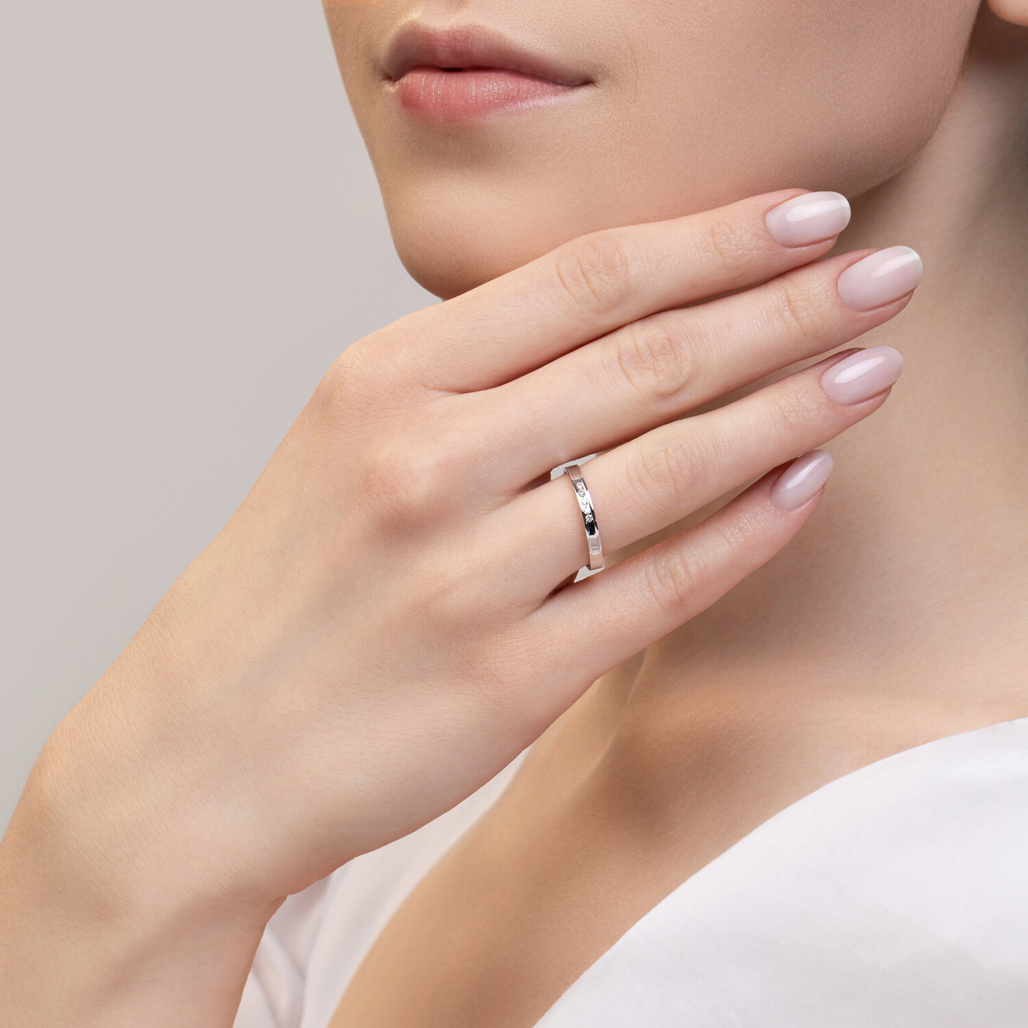 Обручальное кольцо из белого золота 585 пробы с бриллиантами