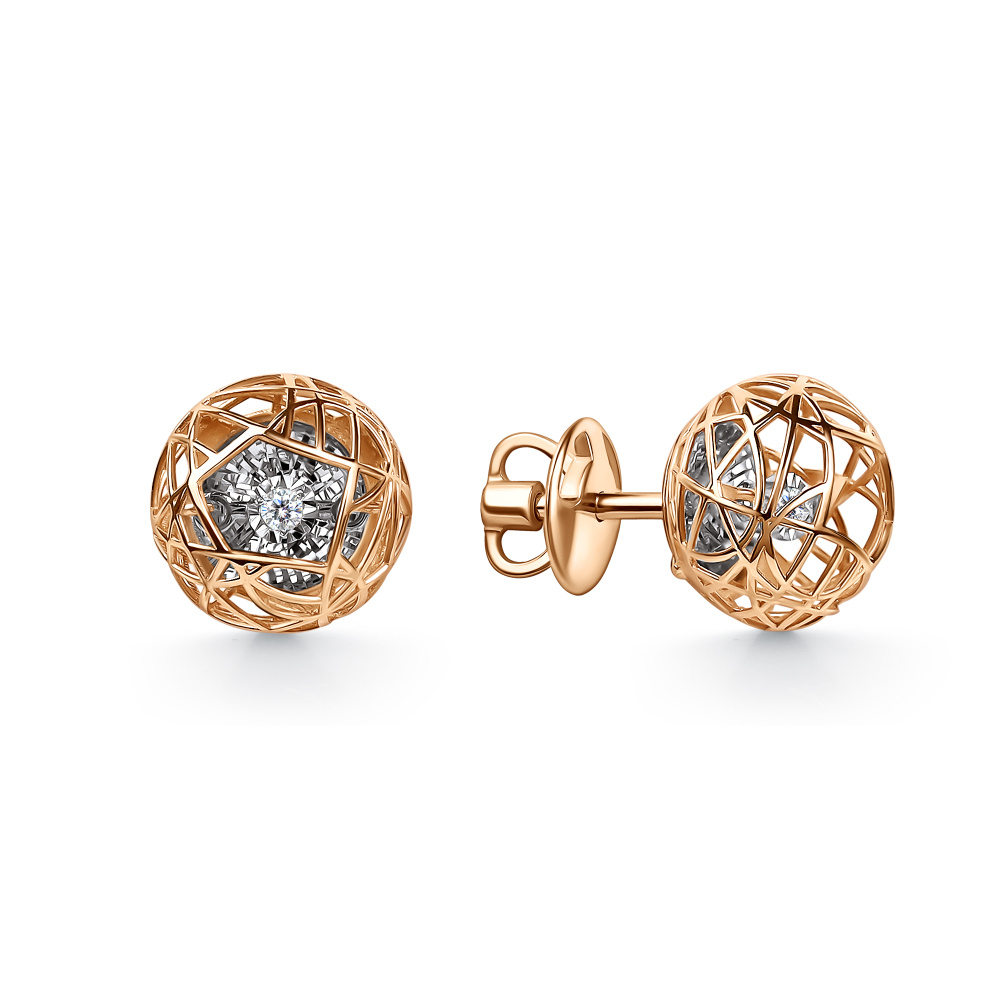 Серьги пусеты из золота 585 пробы с бриллиантами