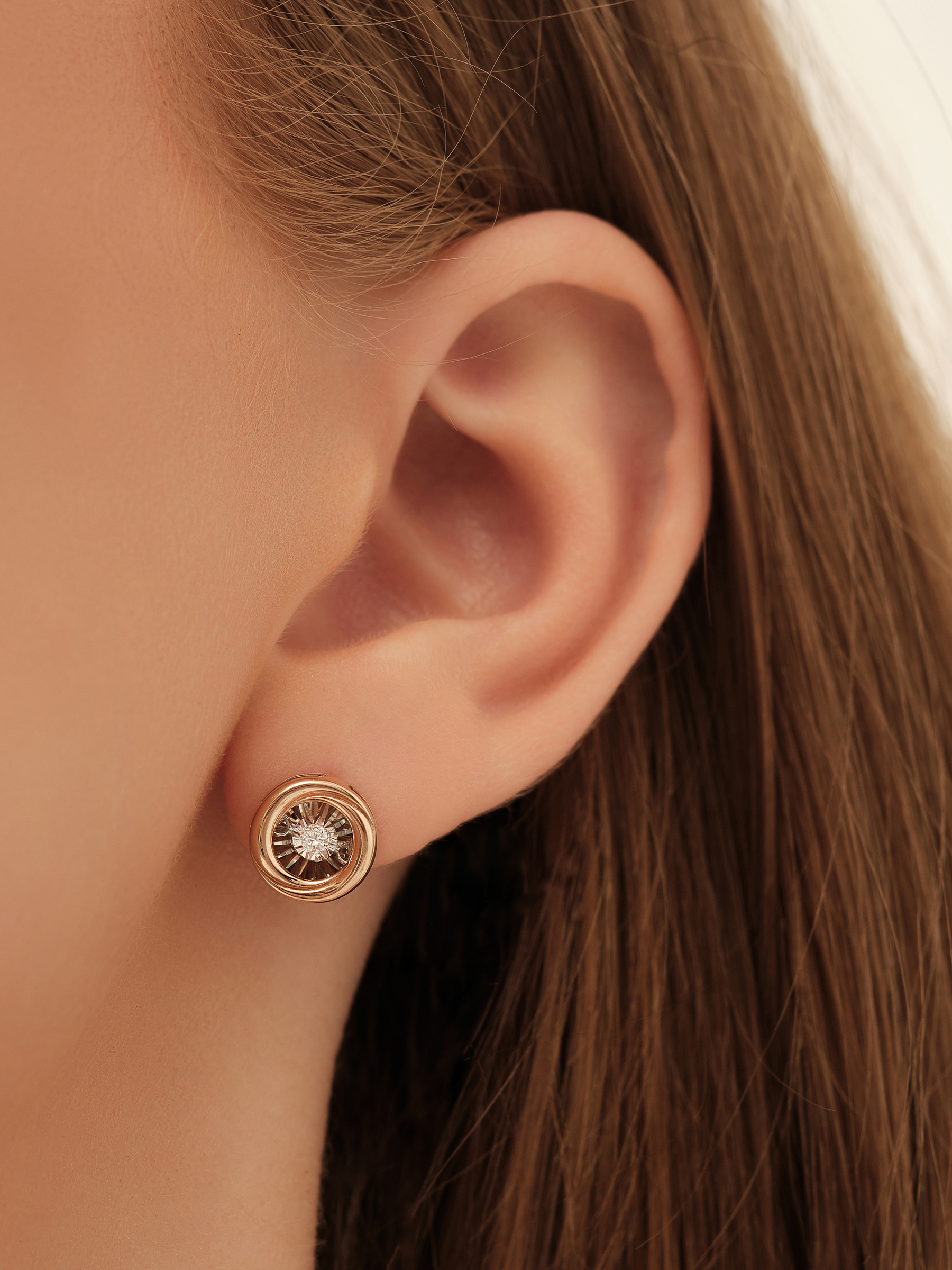 Серьги пусеты из золота 585 пробы с бриллиантами