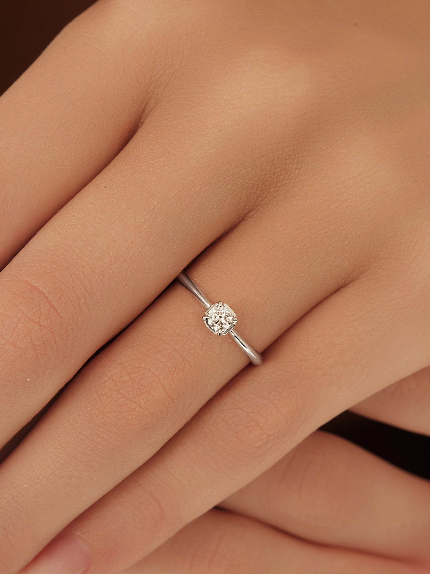 Белое золото и бриллиант - одно из лучших сочетаний в ювелирном искусстве. Тонкая золотая оправа и сверкающий бриллиант - смотрятся прелестно.