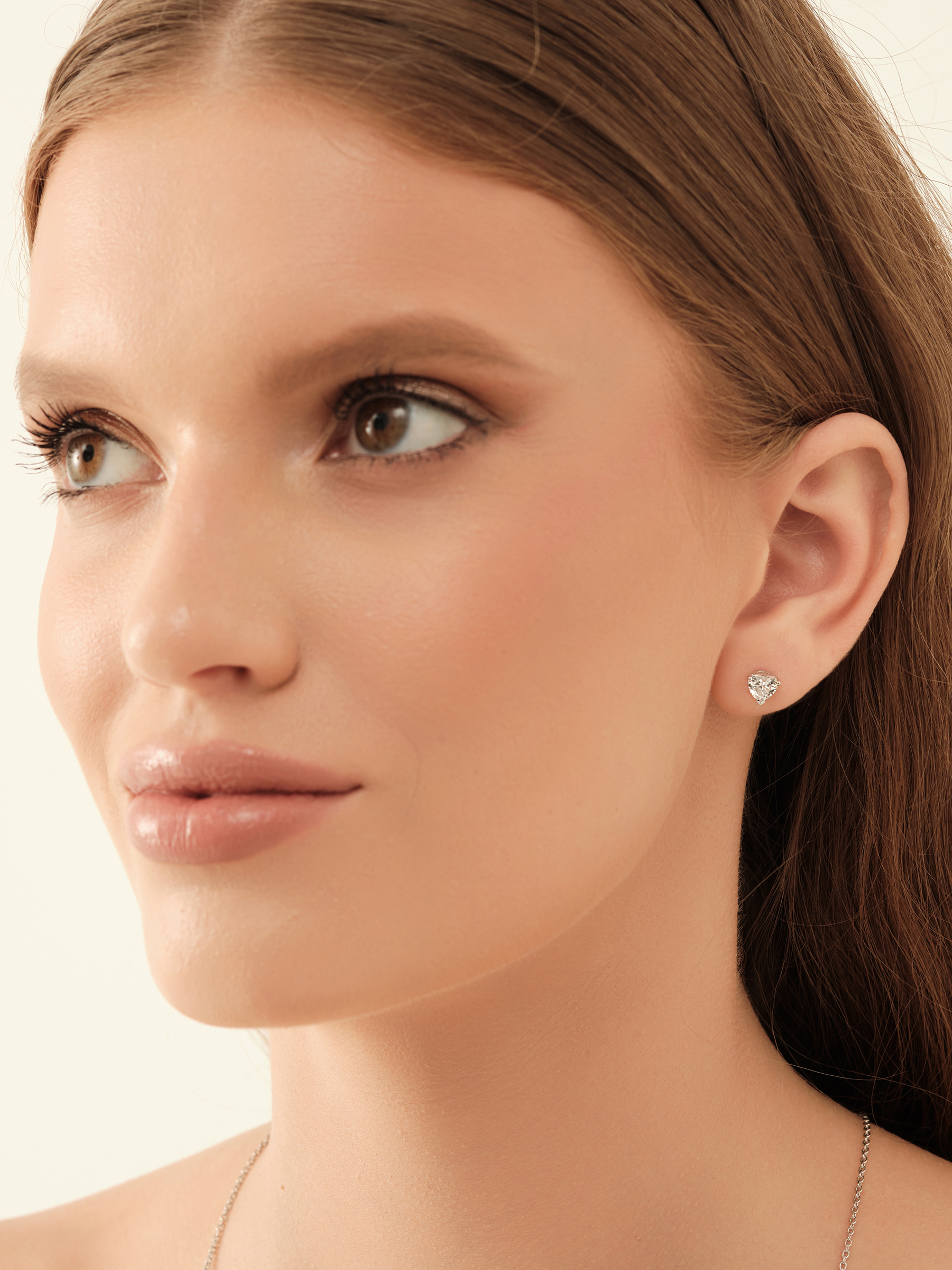 Серьги пусеты из белого золота 585 пробы с фианитами