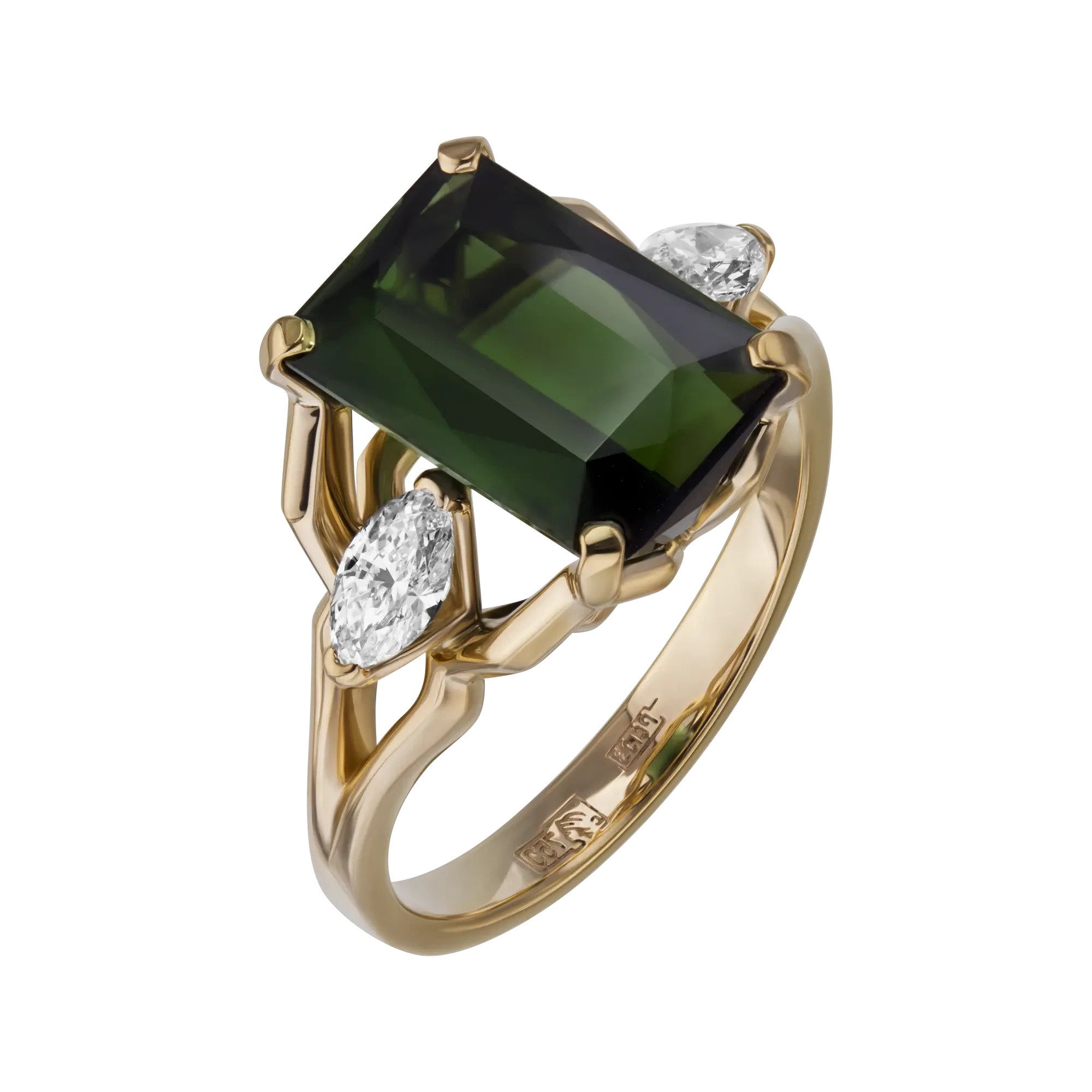 Кольцо (750 ж) турмалин, тсаворит