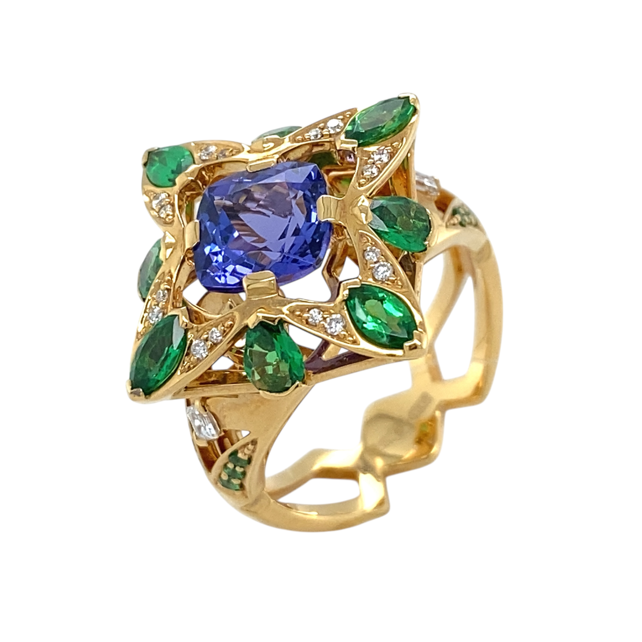 Кольцо (750 ж) танзанит, тсаворит, бриллиант