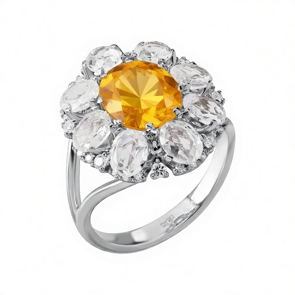 Кольцо (585 б) цитрин, сапфир белый, бриллиант