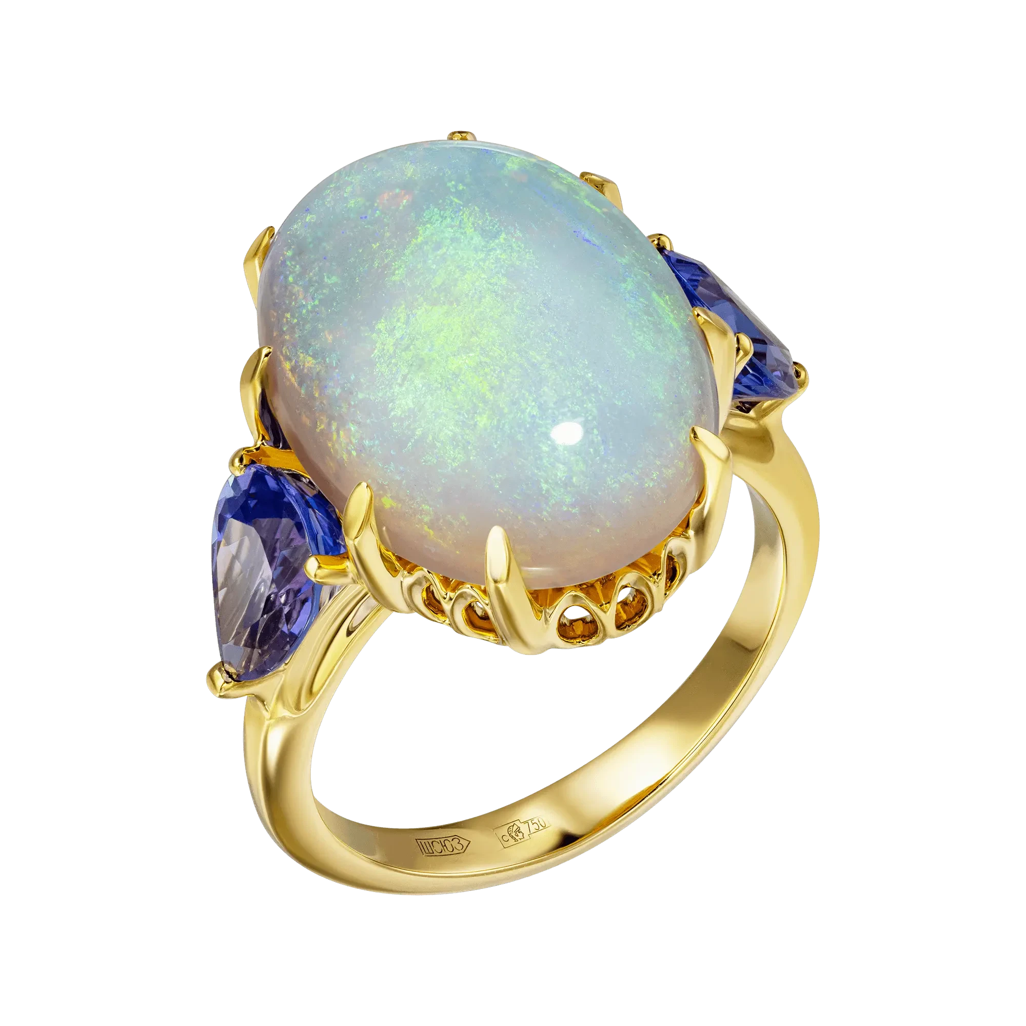 Кольцо (750 ж) опал, шпинель