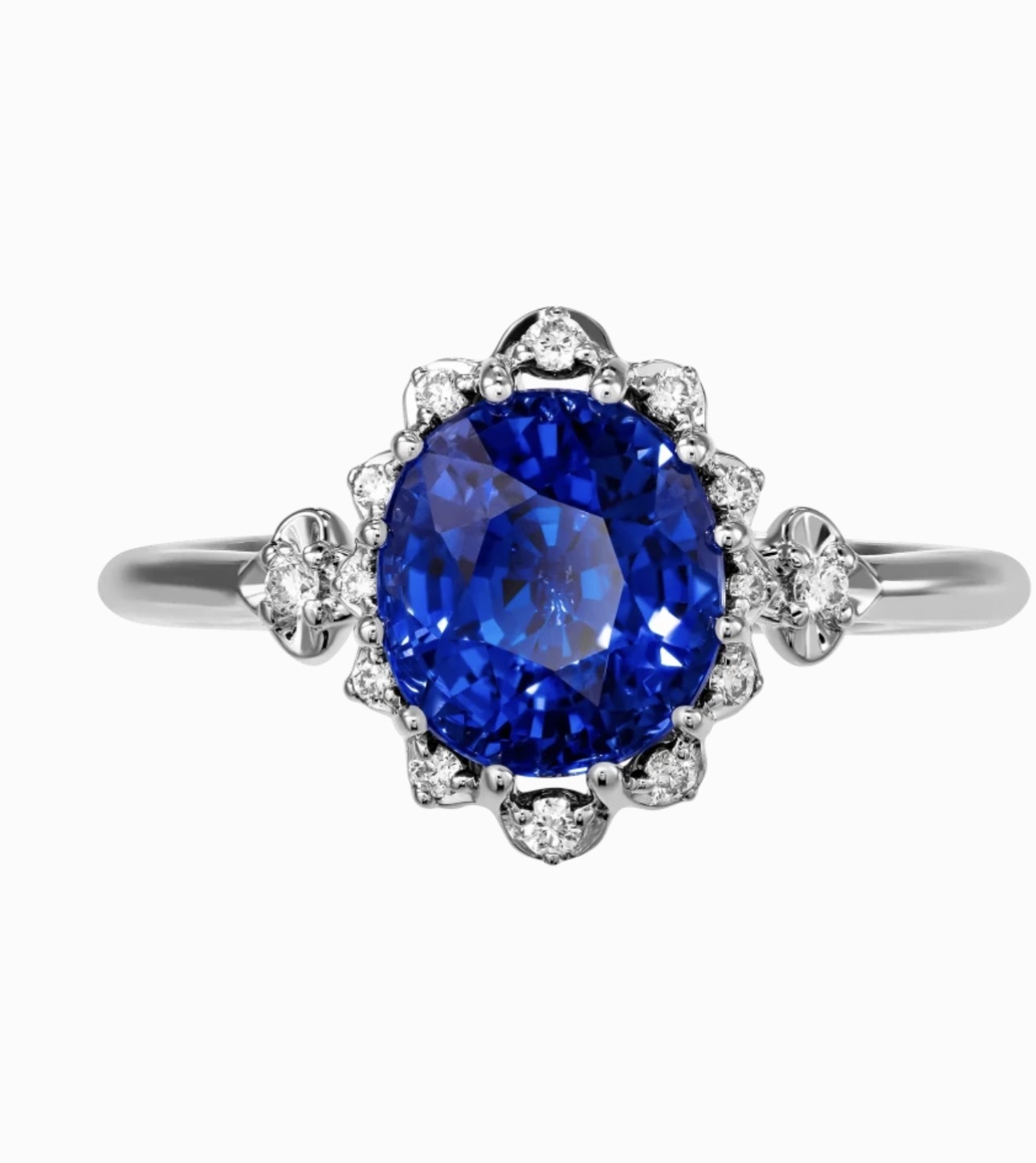 Кольцо из белого золота 750 пробы с сапфирами и бриллиантами