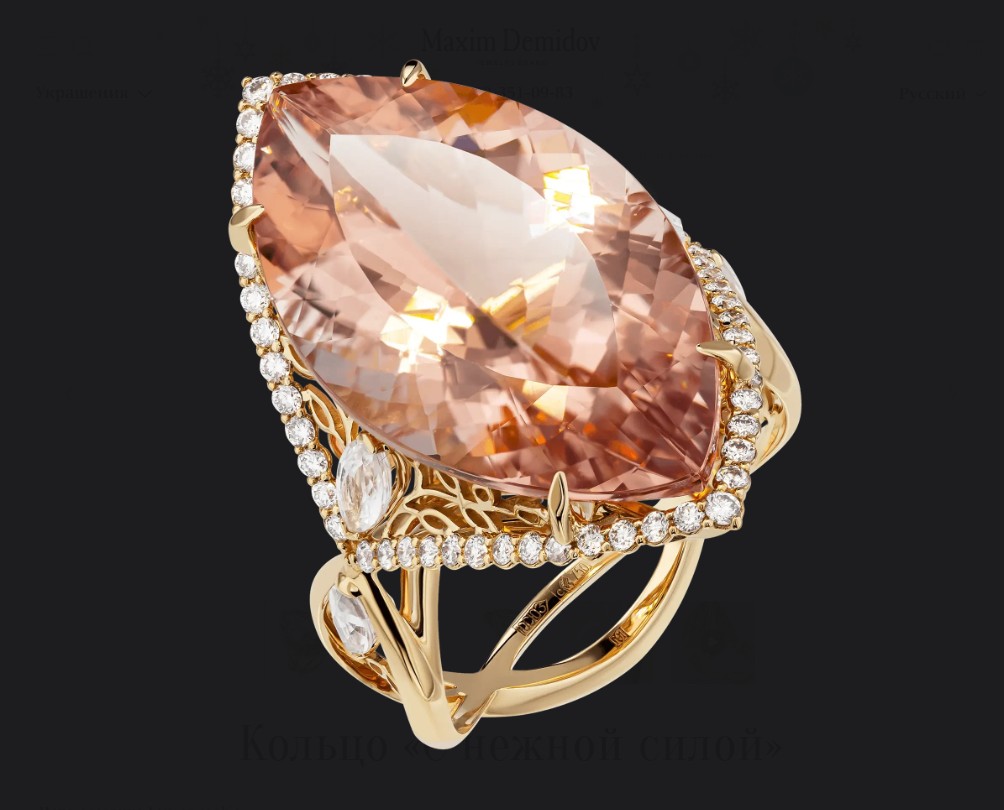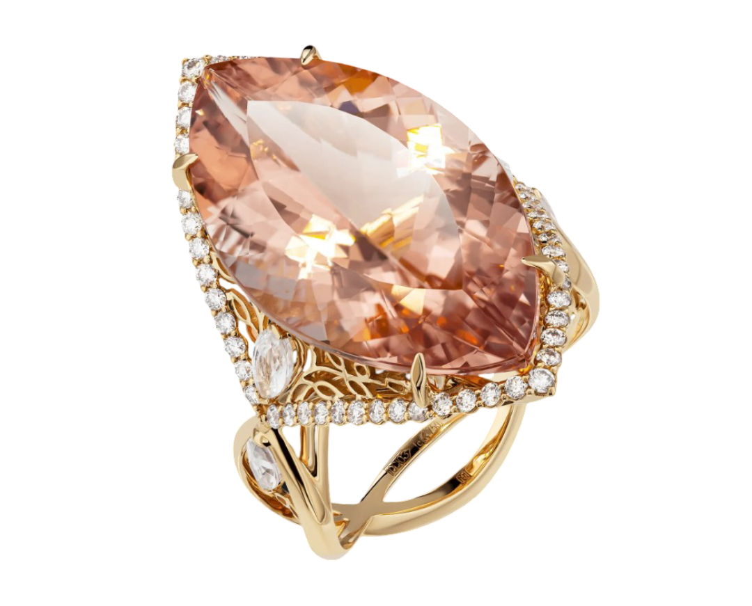 Кольцо (750 ж) морганит, сапфир белый, бриллиант