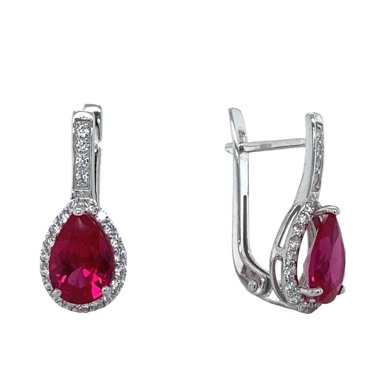 Серьги из серебра 925 пробы с искусственным рубинами и фианитами