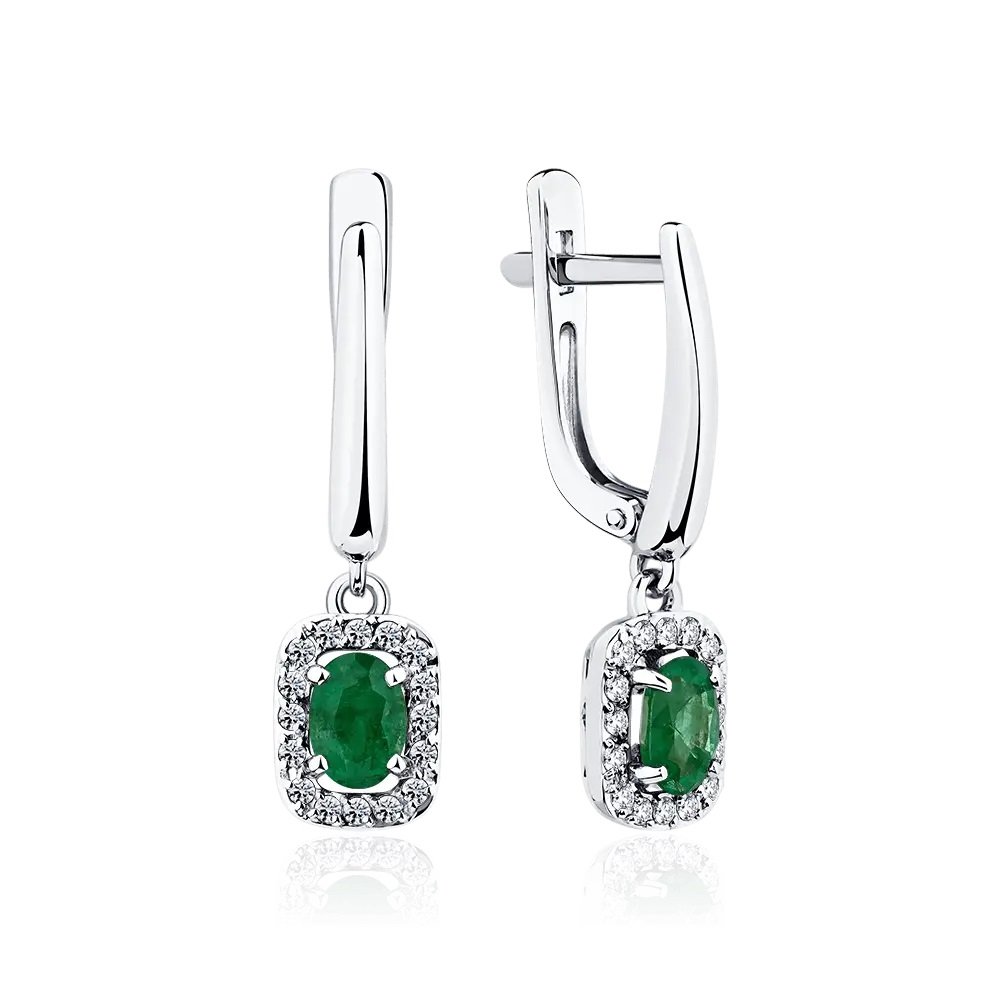 Серьги из белого золота 585 пробы с изумрудом и бриллиантами