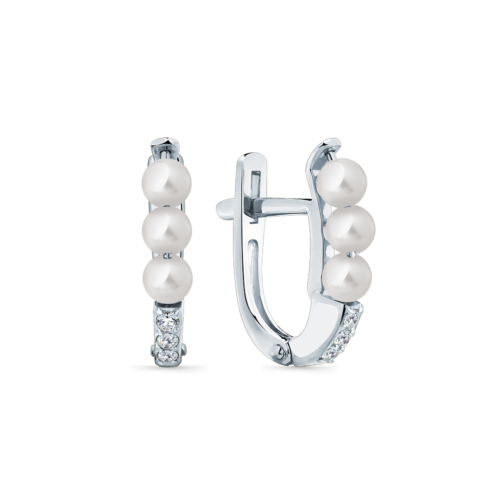 Серьги из белого золота 585 пробы с жемчугом и бриллиантами