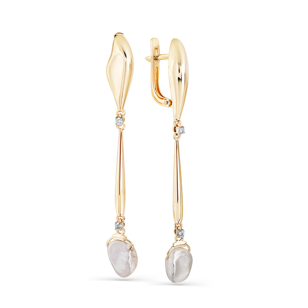Серьги из желтого золота 585 пробы с жемчугом и бриллиантами