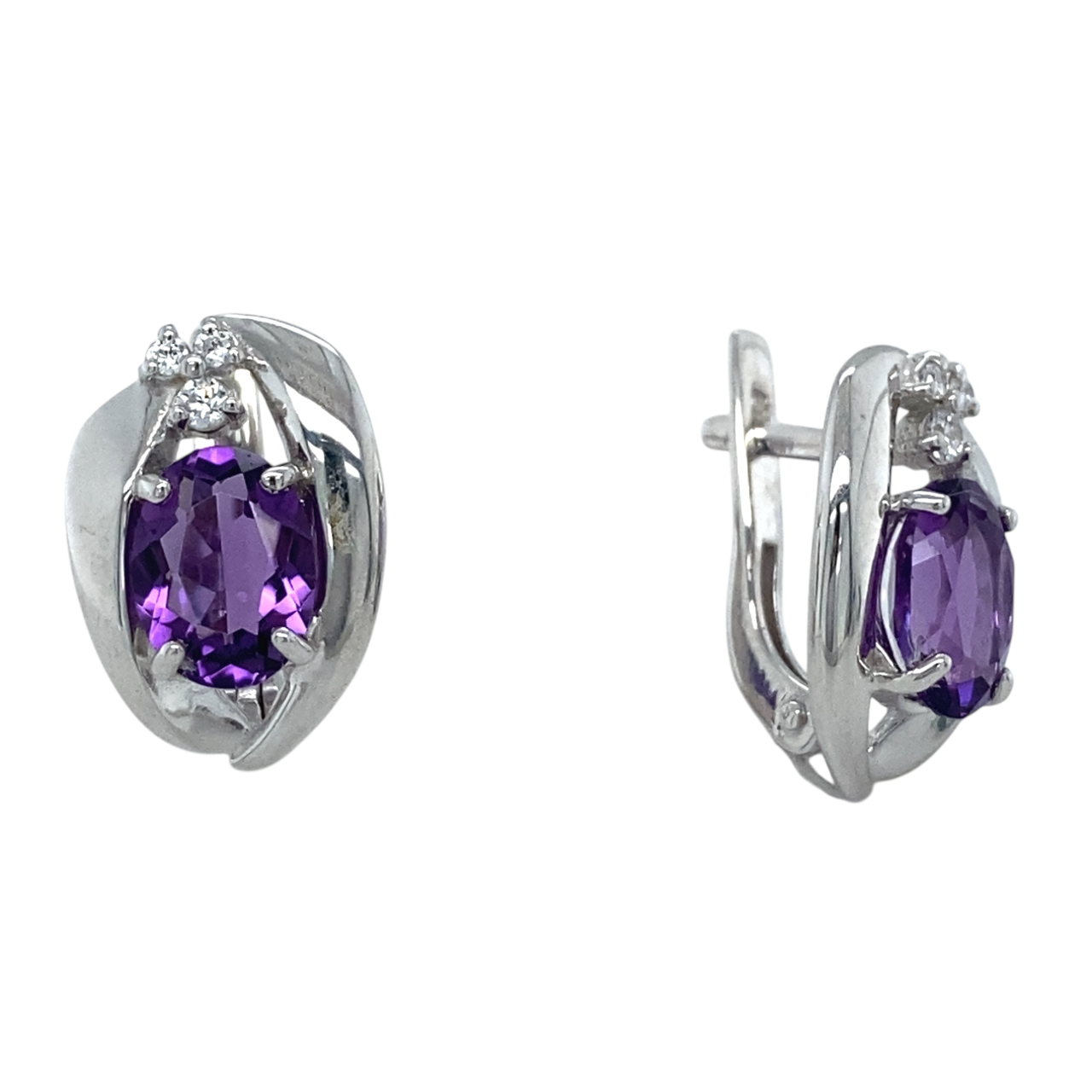 Серьги из серебра 925 пробы с аметистами и фианитами
