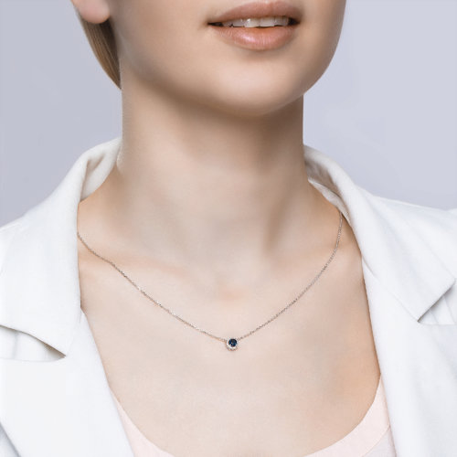 Колье из белого золота 585 пробы с сапфиром и бриллиантами