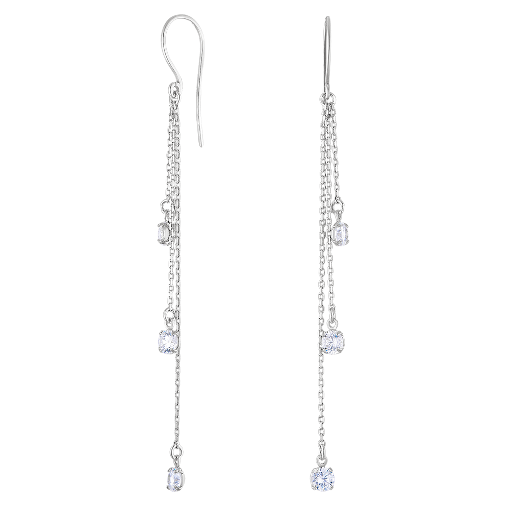 Серьги петельки из серебра 925 пробы с цирконами