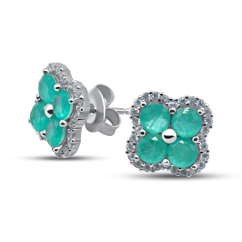 Серьги пусеты из серебра 925 пробы с цветными цирконами