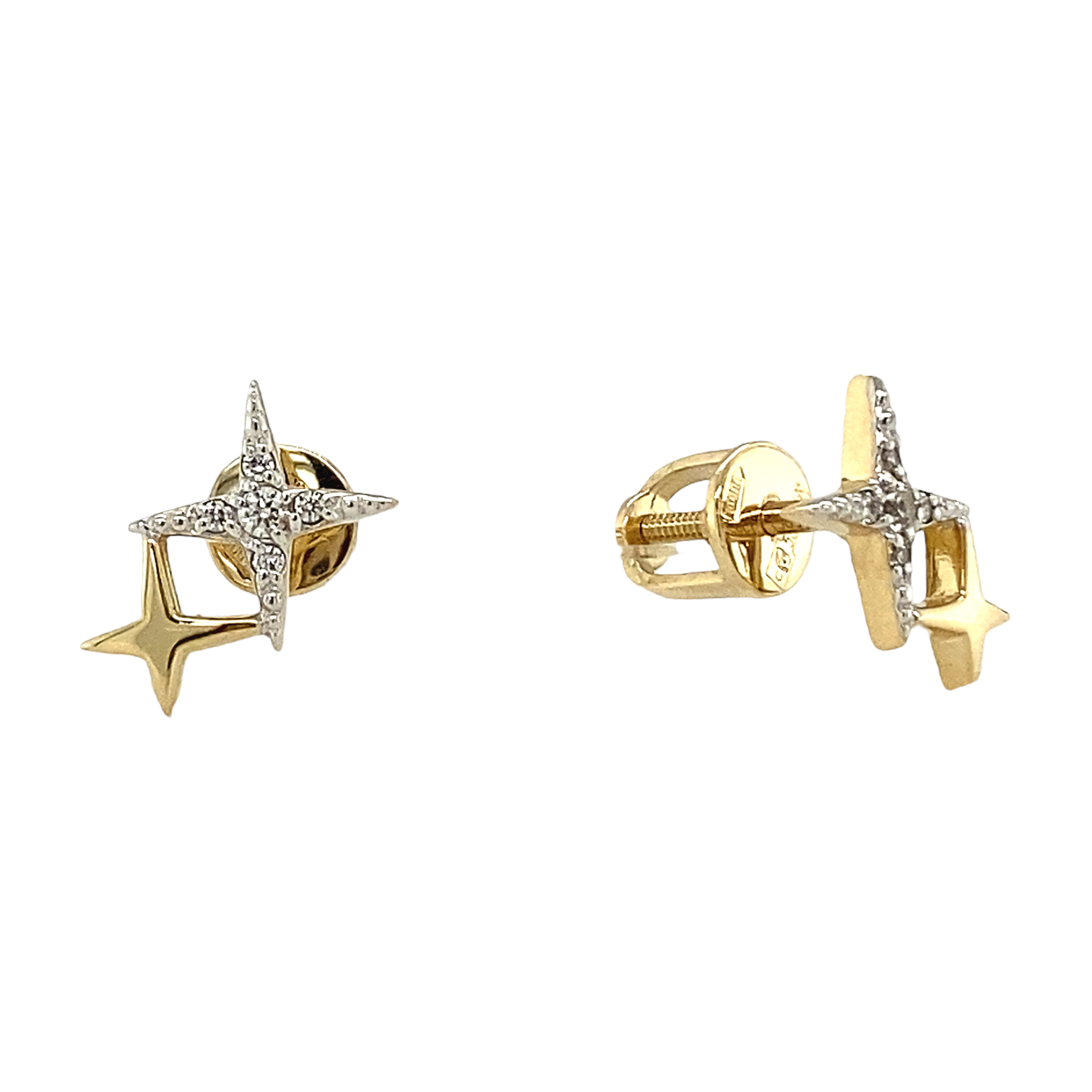 Серьги пусеты из желтого золота 585 пробы с фианитами