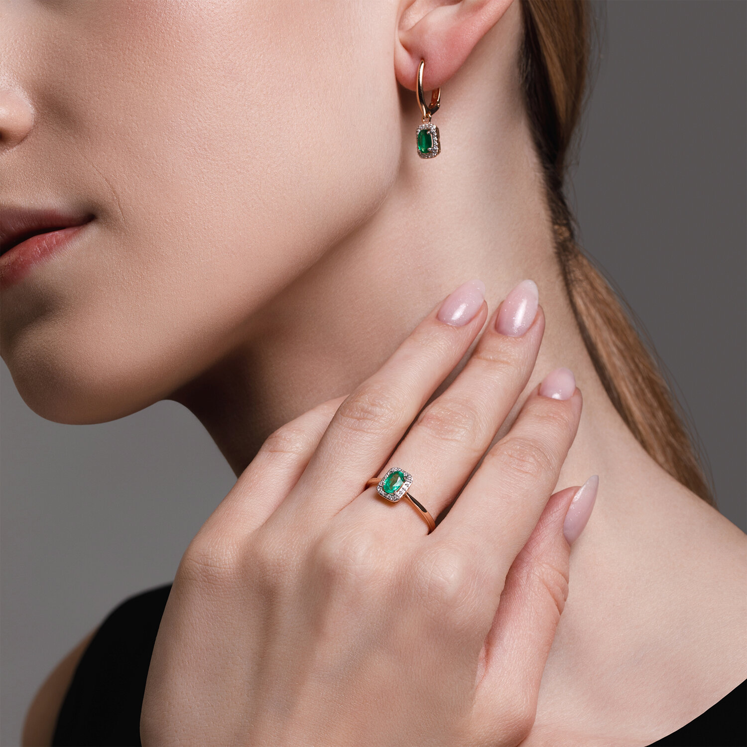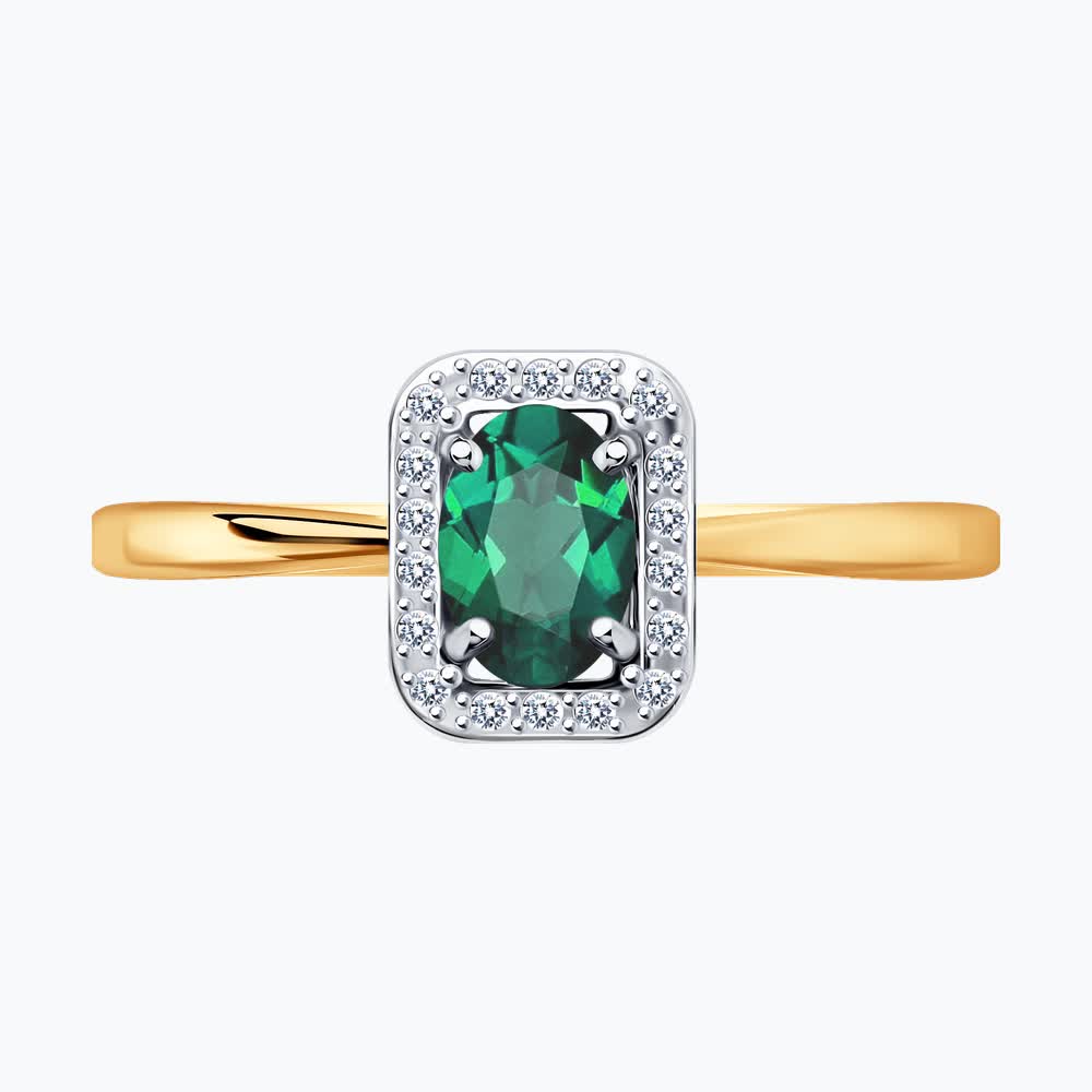 Кольцо из золота 585 пробы с изумрудом и бриллиантами