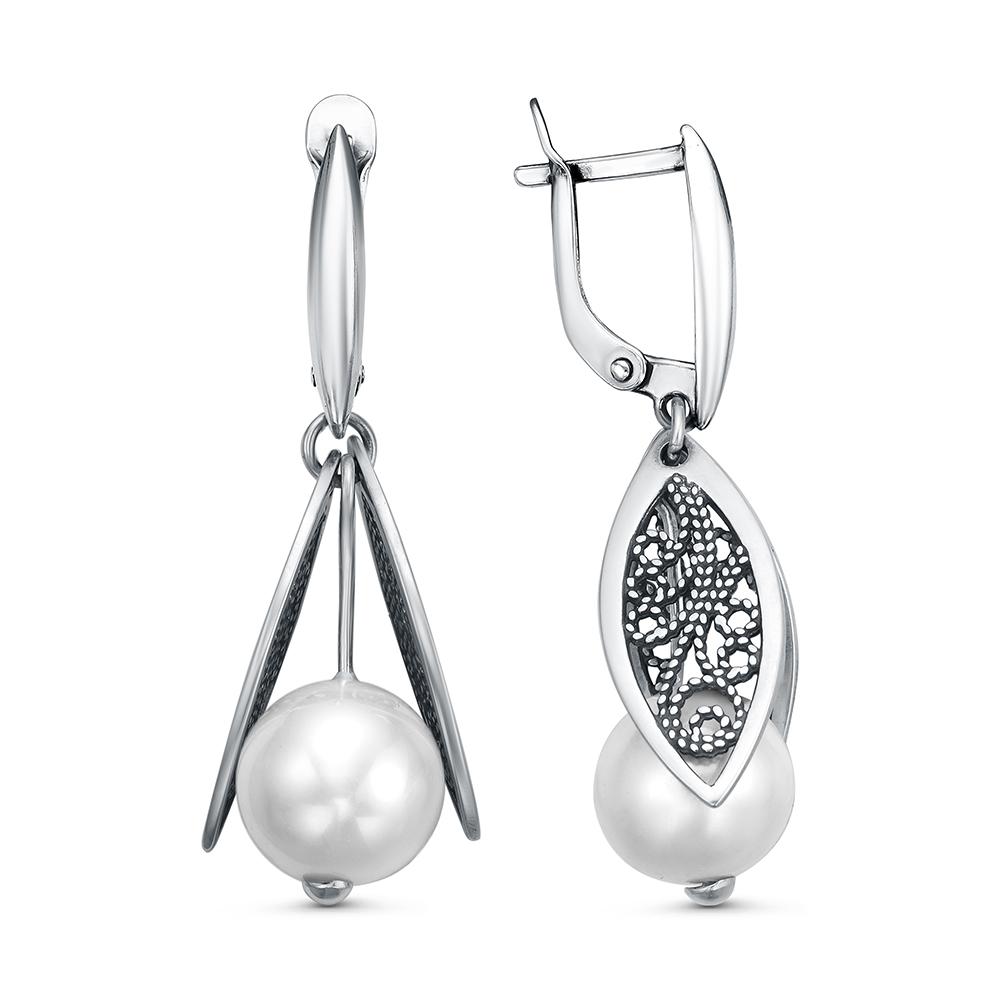 Серьги из серебра 925 пробы с искусственным жемчугом