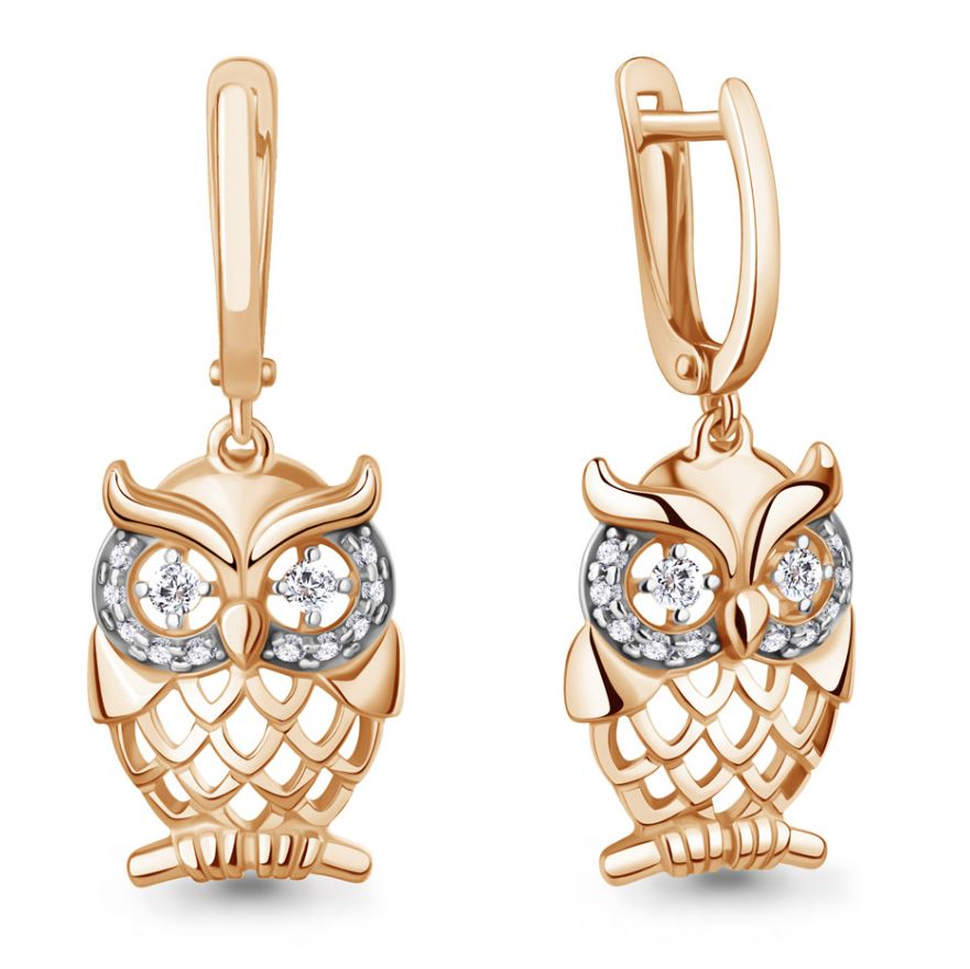 Серьги из серебра 925 пробы с позолотой, сфианитами