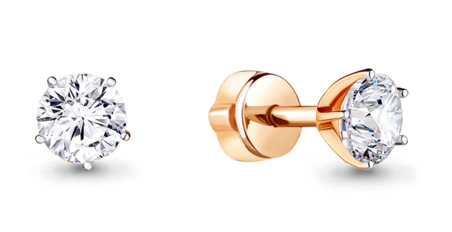 Серьги пусеты из серебра 925 пробы с позолотой, с фианитами