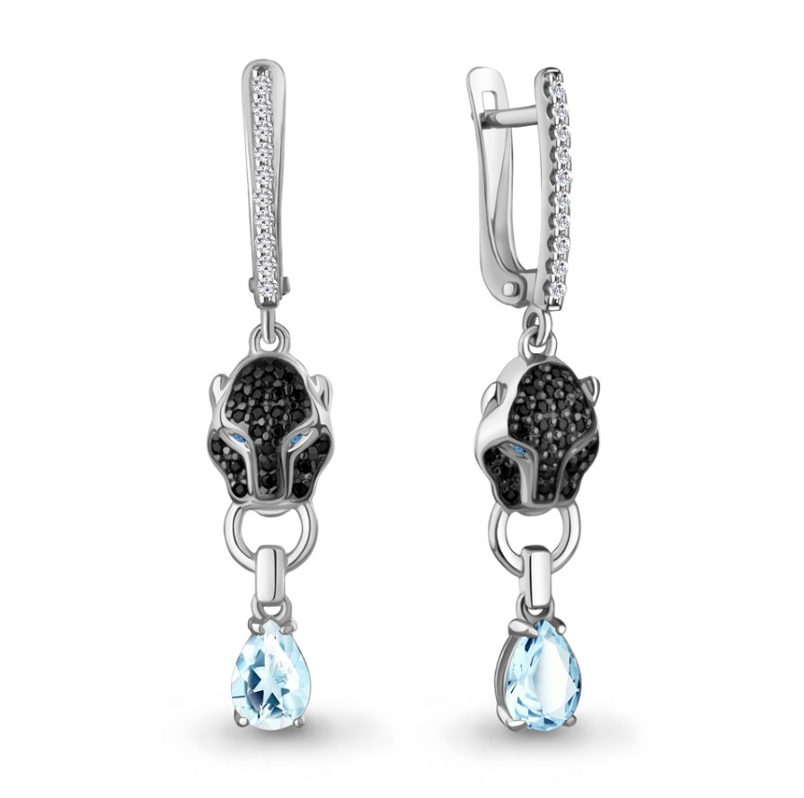 Серьги (925) топаз, топаз синт., кристалл, фианит
