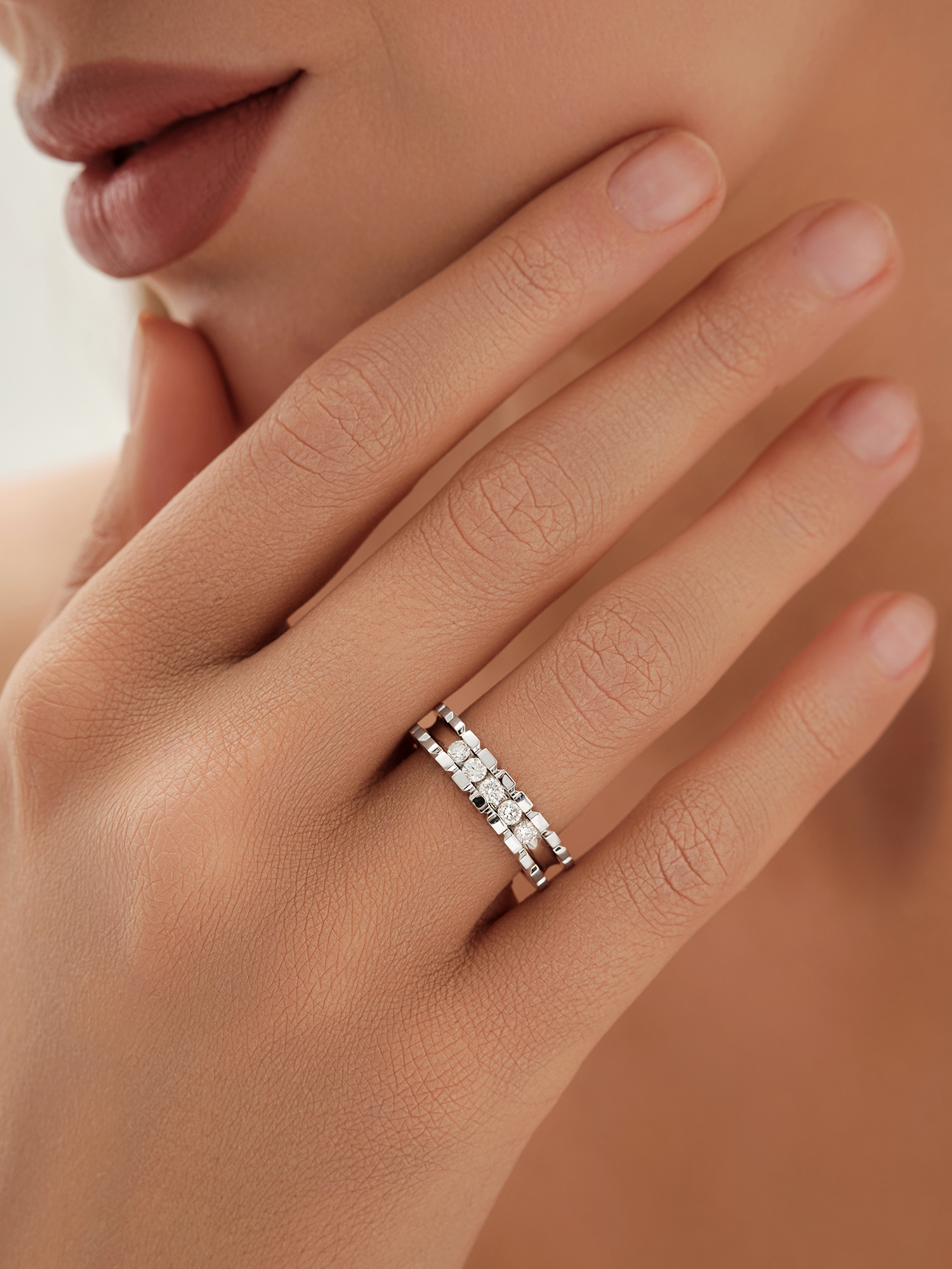 Обручальное кольцо из белого золота 585 пробы с бриллиантами