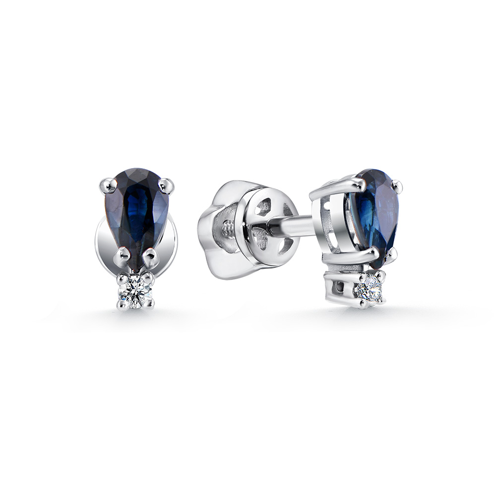 Серьги пусеты из белого золота 585 пробы с сапфирами и бриллиантами