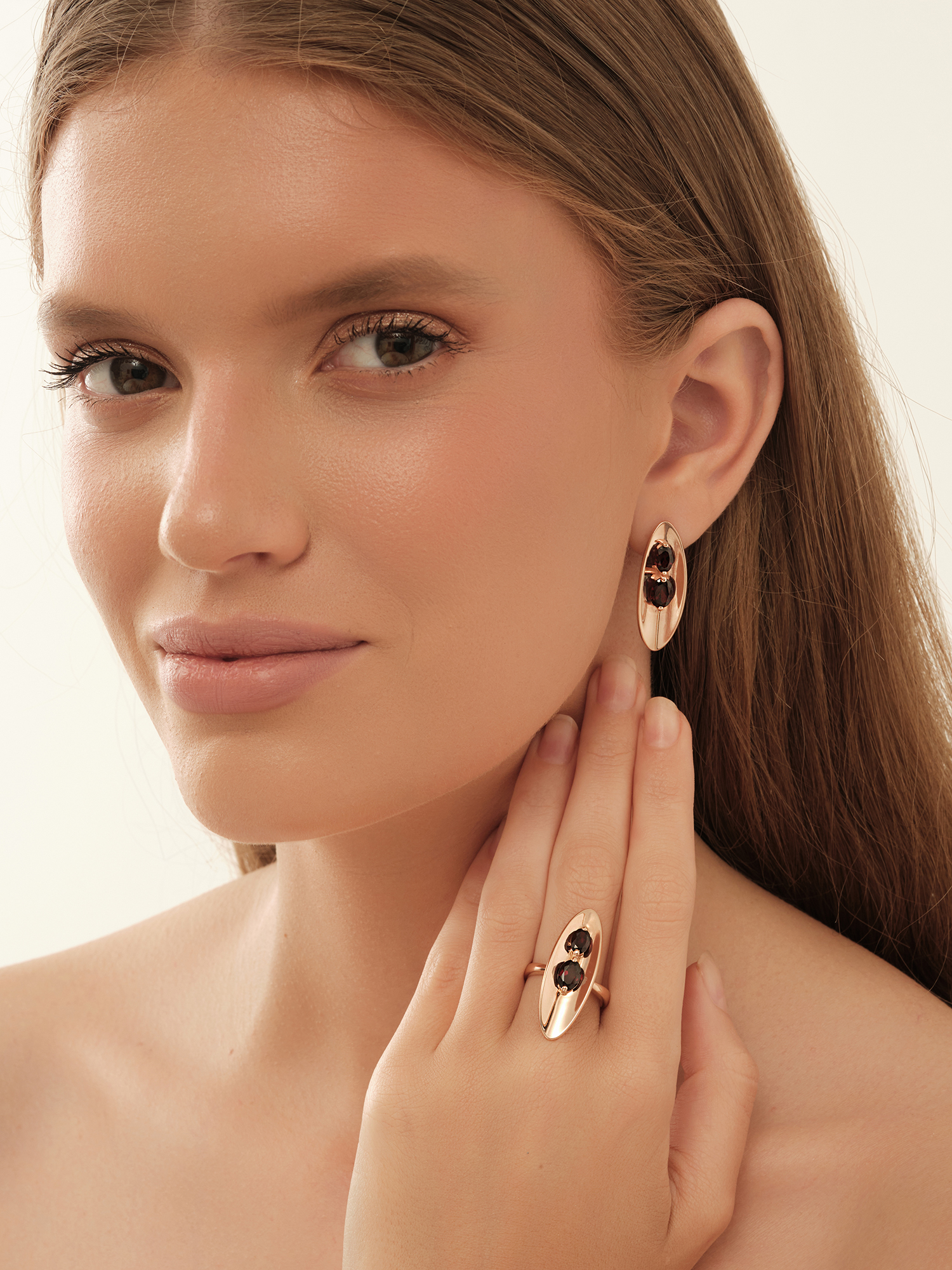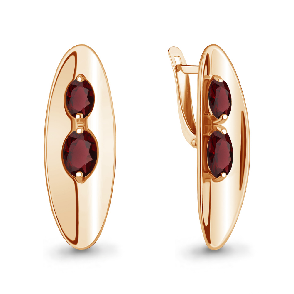 Серьги из серебра 925 пробы с позолотой, с гранатами