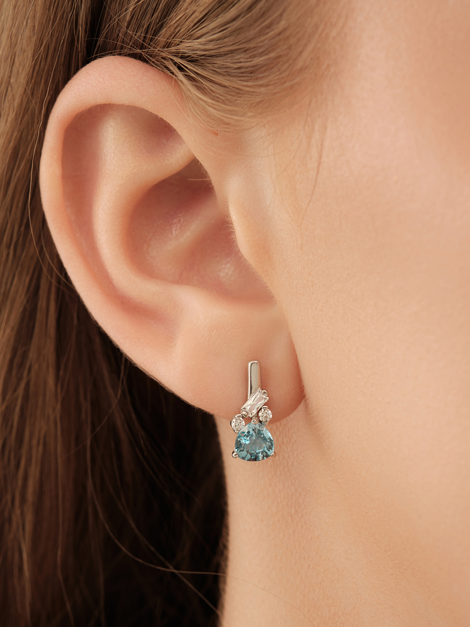Искристое сияние фианитов в этих серьгах эффектно оттеняет глубину голубого оттенка природного топаза. В таких украшении у вас всегда будет радостное и счастливое настроение.