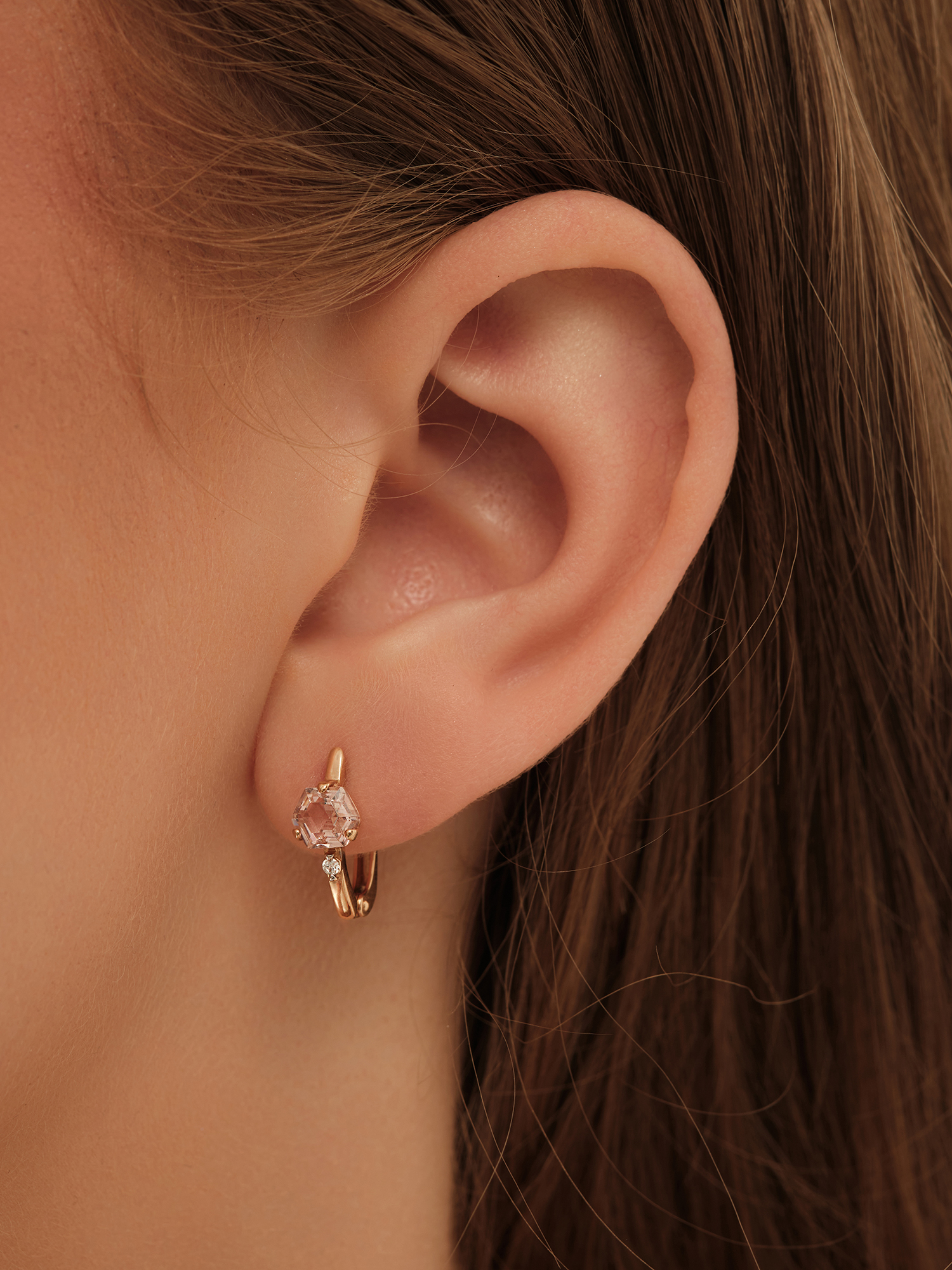 Серьги из золота 585 пробы с искусственным морганитом и фианитами