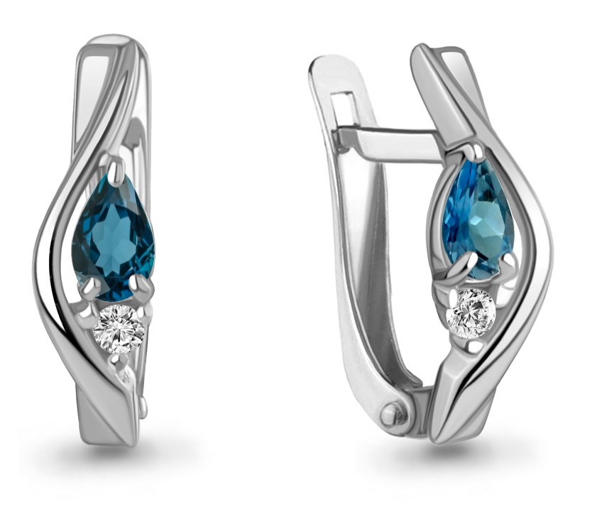 Серьги из серебра 925 пробы с топазом London Blue и фианитами